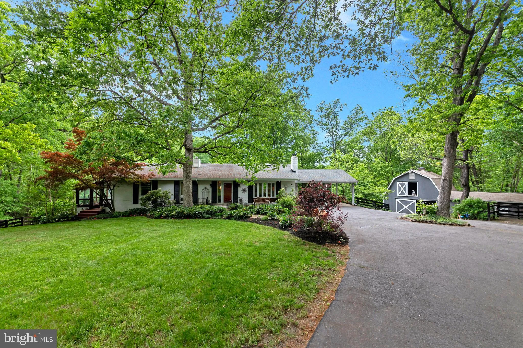 Your own private oasis, tucked away in a well-established community that is the best kept secret of Catharpin . This spacious and updated four bedroom, three bath, two-level brick rambler with screened porch sits on 5.2 acres featuring a walk-out lower level with a second kitchen, your own stocked one acre pond with fountain, frontage on Little Bull Run Creek, duck house, a five-stall barn, paddock near the river with riding rink, and pasture. On the main level you will find a beautifully renovated kitchen that boasts a sparkling white quartz countertop and island, tall cabinets, coffee station with water and electricity, stainless steel wall oven, convection microwave, warming drawer, dishwasher and fridge. Separate dining room with cozy brick wood burning fireplace adjacent to the kitchen. Cathedral ceilings and peaceful pond view will certainly make the living/kitchen area one of your favorite spots in the house. This level also features the primary suite with access to its own private sunroom, walk-in cedar closet and updated bath with shower. Two more bedrooms and the full hall bath complete the main level living area. The lower walk-out level expands your living options featuring an ample family room with wood-burning fireplace, built-ins, and enough space for your home office and entertainment area. Here you will also find an independent au pair/en-suite with a full kitchen, kitchen island, spa bathroom with oversized shower, soaking tub and sauna. There is also the laundry room and storage. Walk-out from the family room and the bedroom to a 1,000 sq. ft. multi-level deck with built-in flower beds and seating where you will enjoy the hot tub, outdoor shower and plenty of space for entertainment and relaxation. For the horse lover, the five-stall barn comes with hot water, electricity, separate tack and feed room, run-in shed, loafing shed, and center aisle. Close to the beautiful trails of the Manassas National Battlefield, Bull Run Regional Park, Catharpin Regional Park, yet a short drive to shops, restaurants, and several local wineries. One look at this property and you will fall in love.