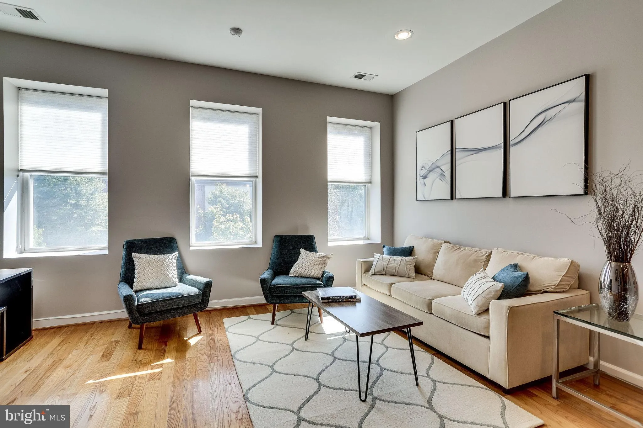 Open Saturday 1-3 pm. Bright and spacious two-level rowhouse condo half a block from Petworth Metro. This renovated 3-BR, 2-BA condo features an open floor plan with a spacious living room, high ceilings, exposed brick, large windows, and low condo fees. A huge master suite, including a walk in closet and a parkin...