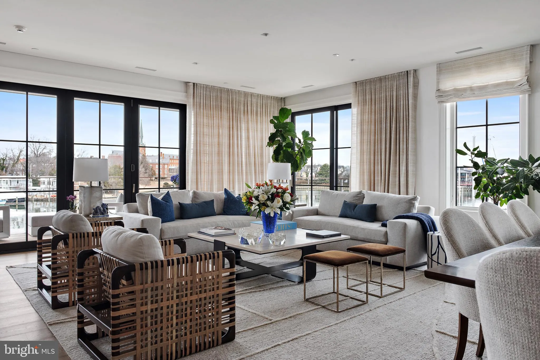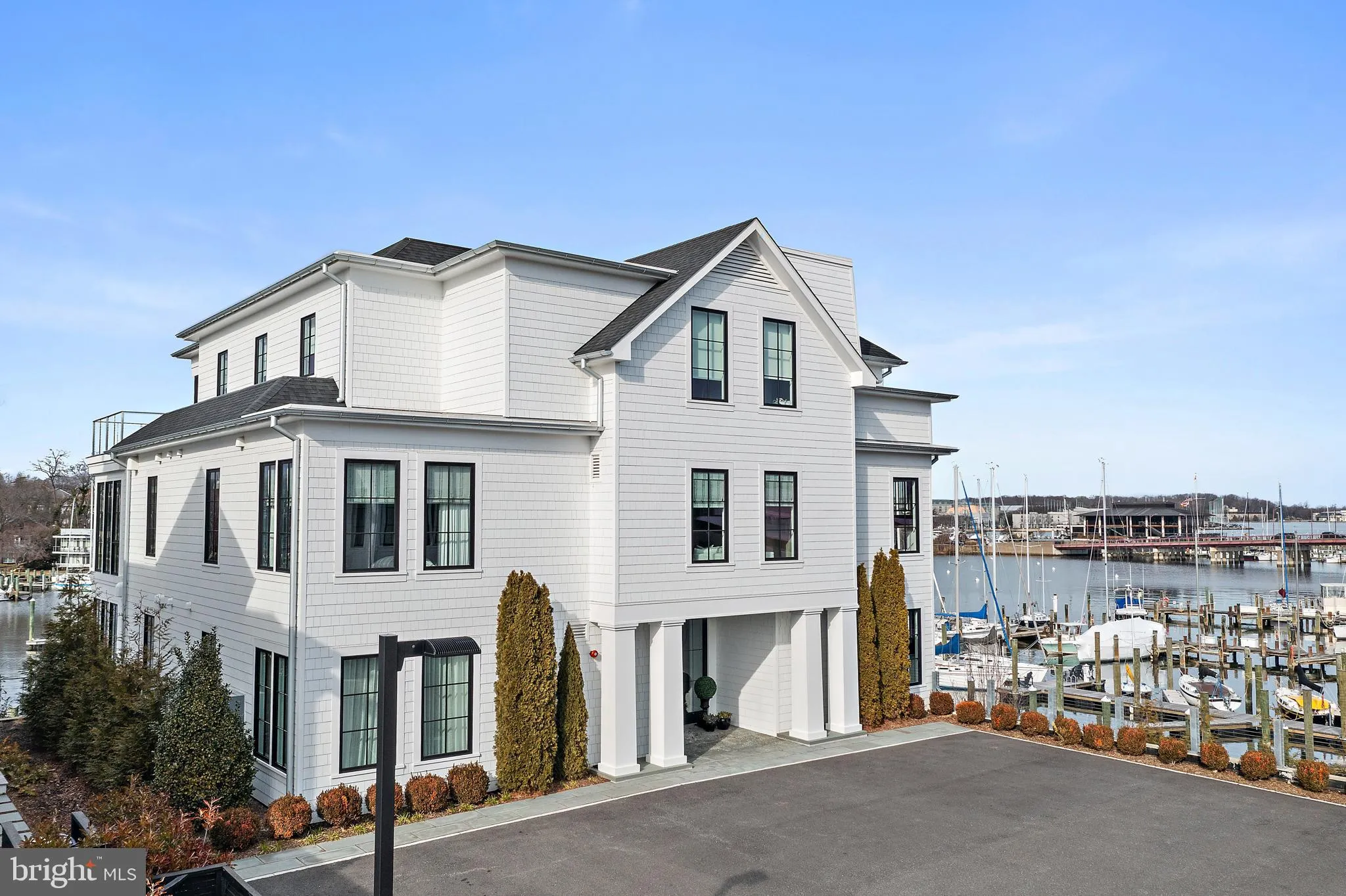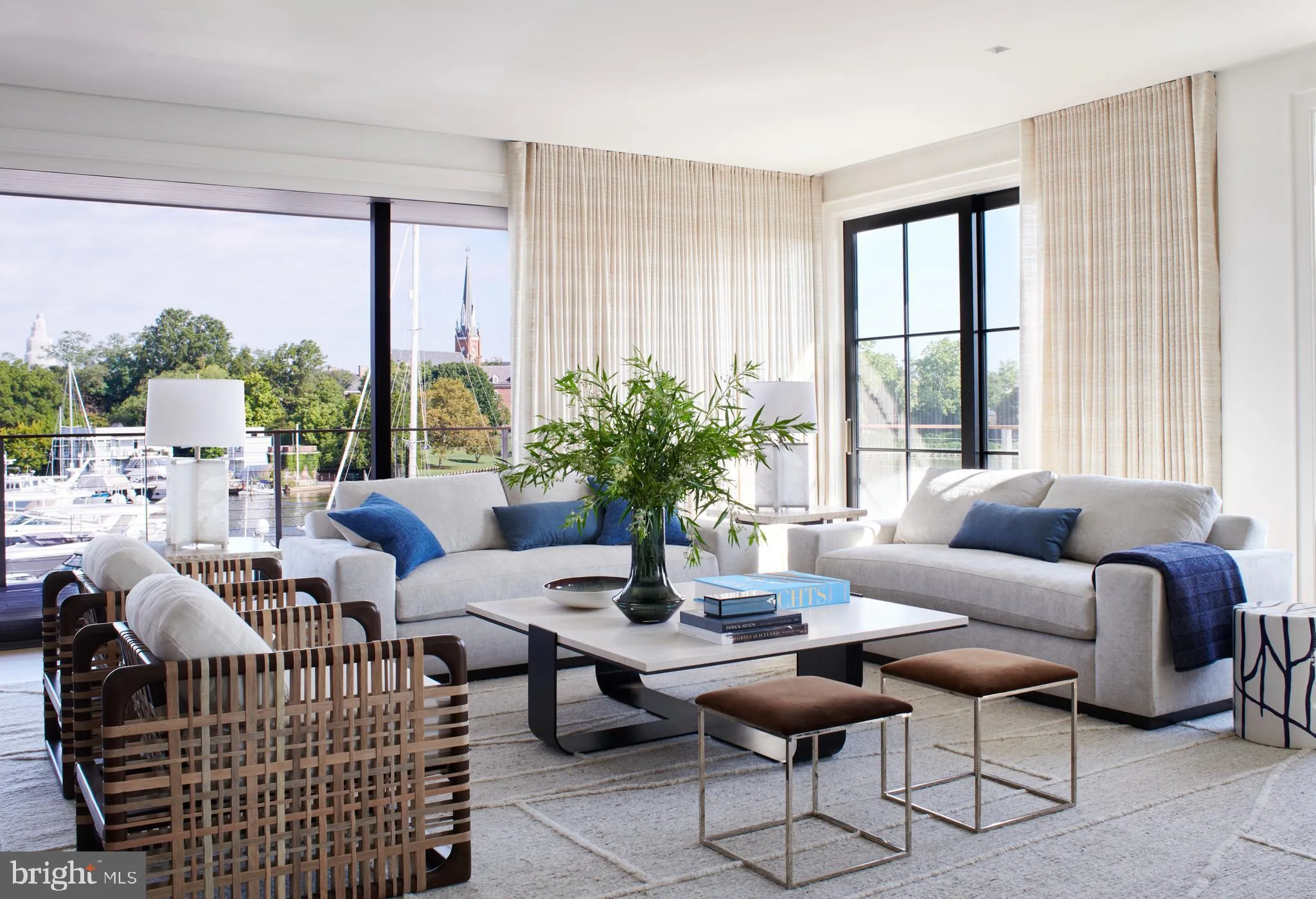 South Annapolis Yacht Center is located on Spa Creek overlooking the beautiful skyline of Historic Annapolis. This award winning residence features an elegant interior design that brings the feel of the adjoining waterway into the living area. Patrick Sutton thoughtfully did the interior design and Bret Anderson of Pyramid Builders constructed this magical 3 bedroom, 3 bath waterfront residence. A bright open floor plan, perfect for entertaining, connects to the wrap around deck overlooking the water. The kitchen features a six burner La Cornue range with matching hood, Sub-Zero refrigerator with custom freezer draws, wine cooler and a large luxe marble center island all overlooking the water. The Primary Suite enjoys beautiful views of Spa Creek & Annapolis, a large dressing room with rosewood cabinets and a luxurious spa like bath. The Primary suite walls are fully upholstered with a wool herringbone material and braided leather trim giving the space a warm comfortable feel. There are 2 additional ensuite bedrooms with one doubling as a den/in home office. There are 2 gas fireplaces, one in the main living area and one on the waterfront deck. There is a rented 1 car garage (across the street, $700/mo) and a storage unit in the lower level of the building. Access to this fabulous residence is via an elevator that opens directly into the unit. Enjoy watching the Christmas Boat Parade, Commissioning Week Blue Angels Show and the 4th of July Fireworks from the waterfront deck. The adjoining world class marina not only is a perfect spot to keep your boat but a great view to watch some of the most beautiful yachts on the East Coast. The prime Spa Creek location, the quality of construction and the award winning interior design puts this property in a league of its own. CHECK OUT THE 3D FLOOR PLAN.