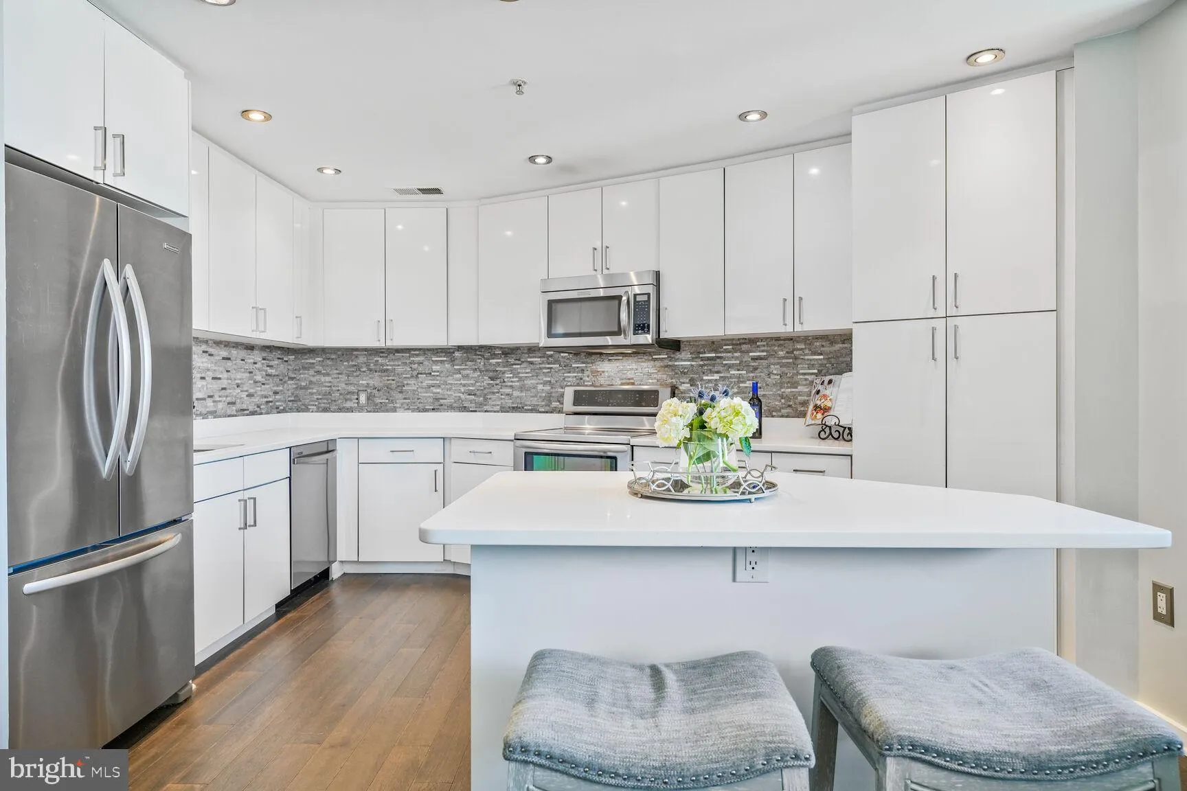 Urban living at its absolute best, must-see, 2-bed, 2-full bath condominium on the second floor of the contemporary ARC 3409 in the heart of Arlington. Conveniently located on the orange line at Virginia Square and close to Clarendon Metro, this modern loft-style condo features 9ft ceilings, exposed ductwork, hardwood floors, and a stunning kitchen with white cabinets/white quartz countertops w/custom backsplash and large central island, stainless steel appliances. Washer and dryer in unit. HVAC (2019) Water Heater (2017), Dishwasher (2025). From the entrance hallway, enter a spacious light filled Living/Dining room combination. Perfect for relaxing as well as entertaining to include an elegant dry bar complete with beverage center. Two large bedroom suites, each with a full bath and spacious walk-in closets, are located on opposite sides of the main living space, making this unit a perfect shared dwelling. The Arc is a bright and vibrant building full of amenities from a helpful and friendly 9-5 front desk concierge, a state-of-the-art fitness center and welcoming first floor lobby, enjoy secure garage parking space (81), private storage unit (#5) and covered bicycle storage. Take a trip up top to the fabulous newly renovated roof top garden deck with stunning views of the National Cathedral, Washington Monument, DC Capitol, Georgetown and beyond. Reno to include all new furnishings and landscape. A perfect spot for morning coffee or a sunset refreshment with friends. Got pets? Cats and dogs are welcome in the building, with no size restrictions (2 pets max). Conveniently located near shops, restaurants and a myriad of conveniences. The Arc is right on the metro rail with quick access to 66 and 395. Minutes from DC and Reagan Washington National Airport.