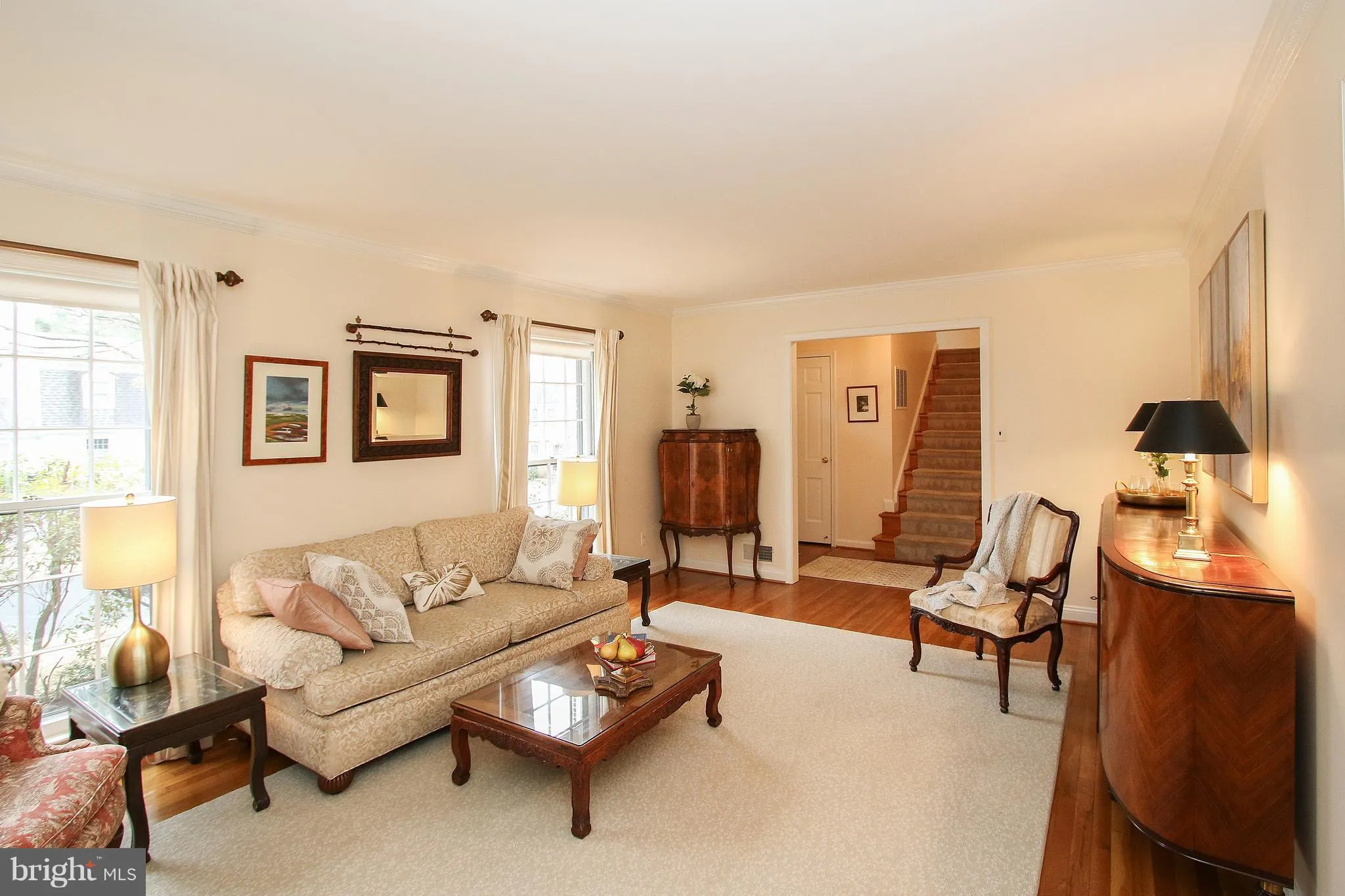 Spectacular split colonial w/ 5 bed, 4 baths is the perfect home. Gleaming hw floors & fresh paint. Cozy up in living w/ wood fp, formal dining room, renovated kitchen w/ ss appliances & granite, sunny home office, spacious family room leads to bluestone patio w/ wooded view. Marble floor in bath. Finished...