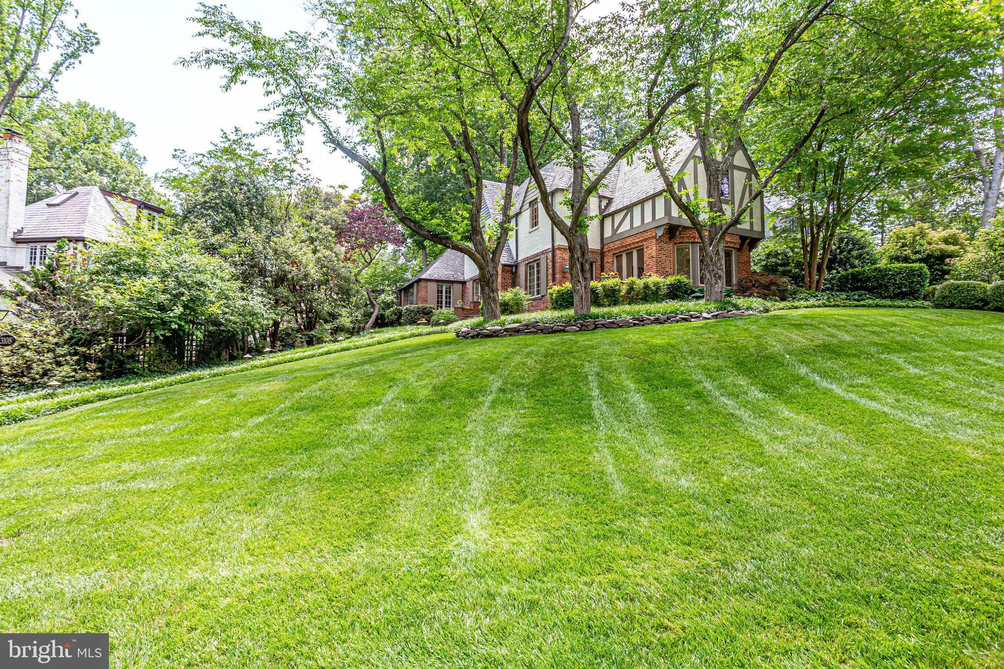 The house you’ve been looking for! One of the prettiest homes on one of the prettiest streets in the coveted Rollingwood section of Chevy Chase. Charming and unique 1930s Tudor-style home designed by renowned architect Waverly Taylor, whose bronze coat of arms still graces the front door. This beautifully maintained and decorated home has multiple additions and renovations, including a spectacular family room with windows galore, exposed beams, cathedral ceiling, and electric fireplace; first floor study/home office with custom Pella windows and panoramic view; master bath addition with jacuzzi tub, cathedral ceiling, skylight, and dual head shower; expanded and renovated Carrera marble hall bath; and renovated entertainment room/fourth bedroom/guest suite/home workout area on lower level with large window wells for lots of light. Stunning landscaping with irrigation system. Renovated kitchen with granite countertops, Viking oven, new 48 inch refrigerator, and eat in area for up to 6 people. The step-down living room features beautiful hardwood floors, high ceilings and a wood burning fireplace with original built-in ash pit. The top floor has an owners suite with two walk in California closets, one original cedar closet, and stunning views of the neighborhood. Two additional bedrooms upstairs, one with triple hung windows and hilltop views. Huge attic spans the entire length of the house with tons of storage! Hardwood floors throughout. Custom stained glass window on stairwell. Family room doors lead to a beautifully landscaped flagstone terrace with conversation and eating areas. French doors from the living room lead to another flagstone terrace on the front where you can sit in privacy and watch the quiet Rollingwood world go by. Off street parking space in back. Amazing location – just a few blocks to the DC line and two blocks from Rock Creek Park ball fields, Candy Cane City playground and Rock Creek Bike Trail. Walk to Meadowbrook Stables, La Ferme and Brookside Market. Great pivot point to D.C., Bethesda and major commuter routes. Coming Soon Purple Line METRO station, new grocery store, shops and restaurants at the nearby Chevy Chase Lake Development.