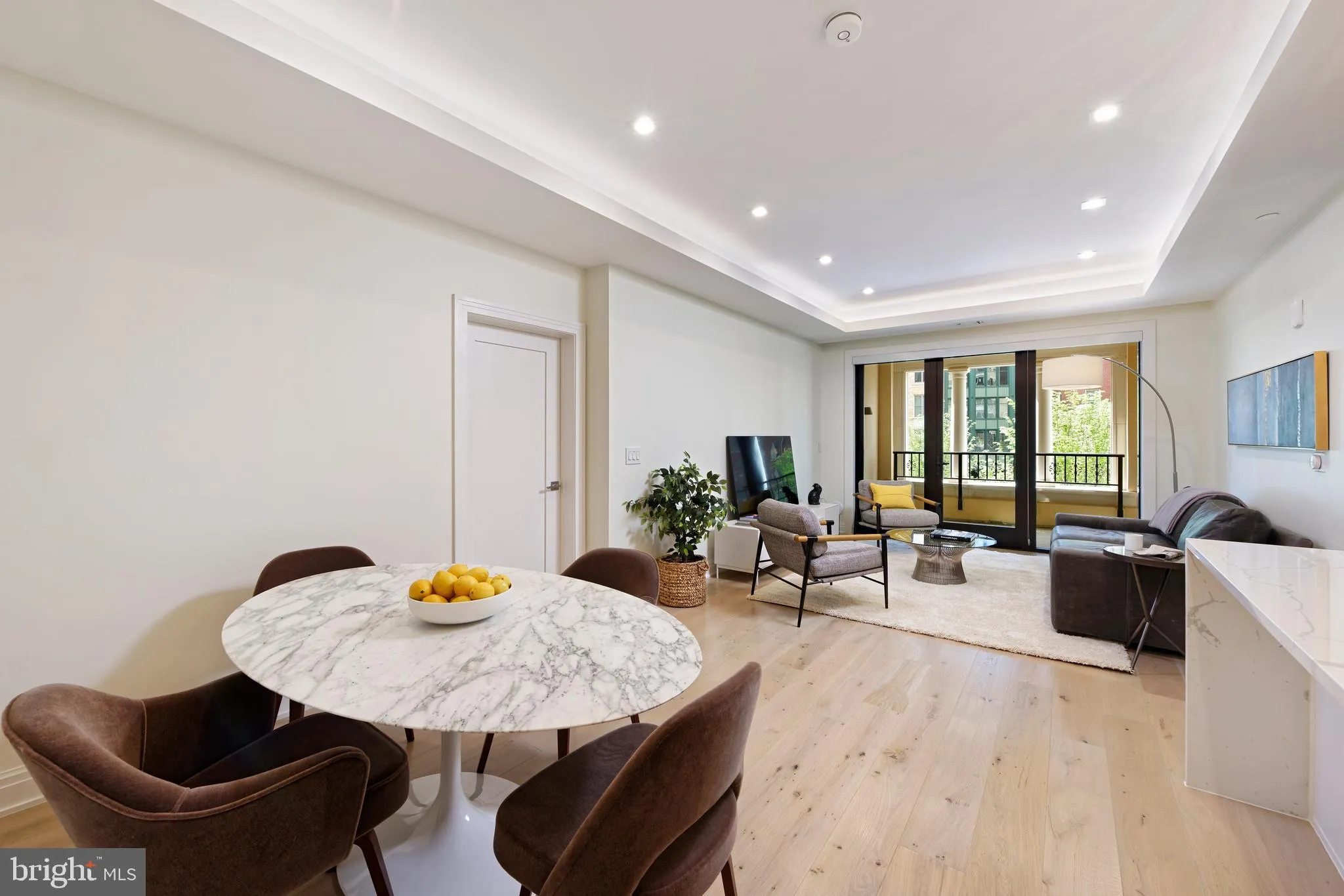 Amazing NEW PRICE for this gorgeous, wonderfully secure, luxurious two bedroom condo with the great amenities! It’s bright, open & quiet and has beautiful high ceilings, a spacious gourmet kitchen and lovely private balcony. Located in Ritz-Carlton Residences in Chevy Chase with 24 hour valet service to park your car, 24/7 concierge, a doorman, porter service, and an onsite management & building engineer. Then there is the 7th floor: 12,000sf dedicated to its residents- fitness center, multiple club rooms, onsite catering kitchen and outdoor spaces for lounging or entertaining along with BBQ grill & fire pits, and free wifi throughout the building. The condo is equally impressive. But first, it’s important to note that it is located on the front side of the building, a significant asset. It allows for fabulous views of trees and the charming colorful park from all windows and the balcony. You can even hear the waterfall when you are reading, relaxing or just “people watching” on your balcony. Now for the interior. Entering the condo—through its foyer—you will immediately notice the gorgeous wide-plank white oak flooring, high ceilings and beautiful lighting. Its spacious gourmet kitchen will be on your right, with top-of-the-line Bosch appliances, Italian solid wood cabinetry and enough counter space to delight the best of cooks. There is a large dining area on your left which flows into a wonderful living space and then onto its lovely, private and quiet balcony (with space for table & chairs). The spacious primary bedroom includes the perfect built-in closet along with a gorgeous spa-inspired bath-Carrara marble, soaking tub, big frameless shower—everything you would expect of a Ritz-Carlton bath. The second bedroom is also a good size with its own impressive bath. In addition, there is a powder room for your guests and a laundry room with space to spare located off the foyer. The property includes two secure parking spaces and a storage unit. Grocery, pharmacy, restaurants, and more are on the Square; the Capital Crescent Trail is nearby, as is the new Purple Line. It’s a remarkable home! Come see for yourself. If you’re working with an agent, have them arrange for a private showing. If you have no agent, please call the front desk at the Chevy Chase Ritz and ask them to have me call you. I’ll gladly show you.