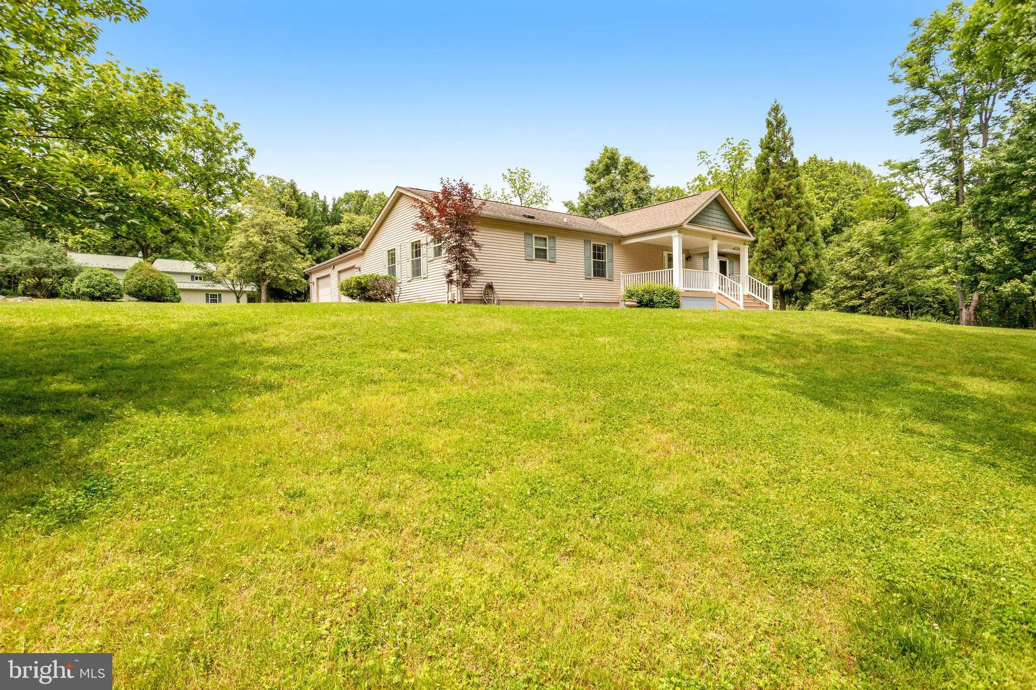 Beautiful two-level ranch home with finished walk-out basement, four bedrooms, three and one baths, plus two car garage situated on 16.2 acres (see survey in documents). Main level has three bedrooms, two full baths spacious living/dining and kitchen areas with fireplace, laundry, primary suite with spa like bath and walk-in closet. Beautiful hardwood flooring throughout main level and laminate wood and carpet in lower level. Walk-out lower level has one bedroom, living room, family room, full kitchen, two spacious bonus rooms, beautiful full bath with oversized shower, laundry room and half bath. This property comes with a separate structure (see photos) with four oversized garage doors, and rough-ins for living/office space. Secluded and tranquil setting with creek that runs through the property.