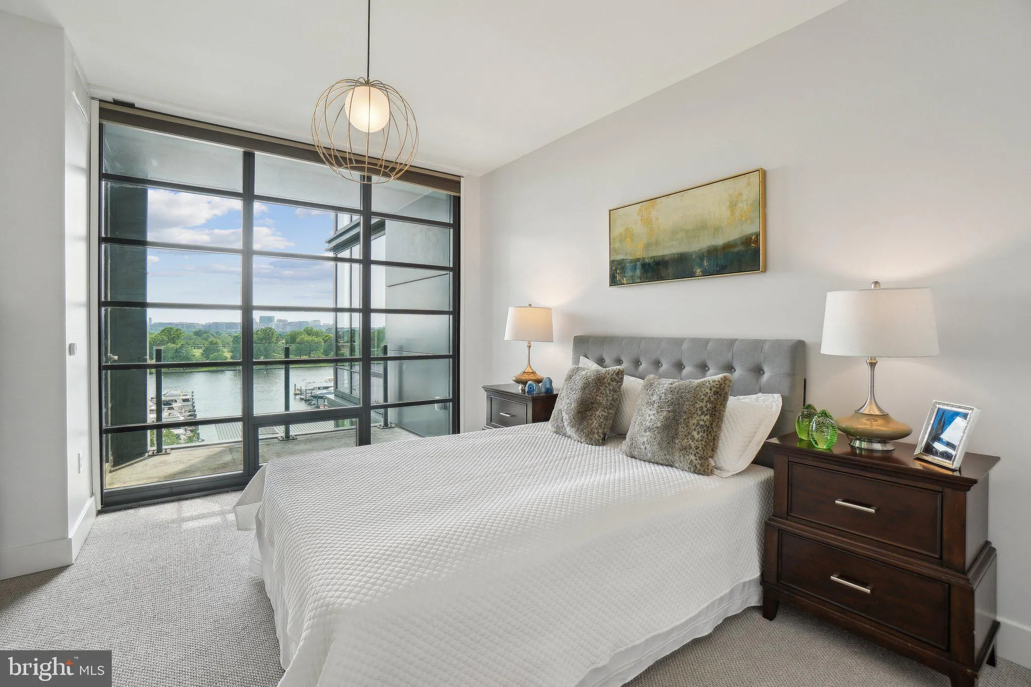 Hello Water view of the Washington Channel! This stunning one bedroom has a floor to ceiling wall of windows running from the open floor plan living room–kitchen to the generous bedroom. Your own private balcony has an unobstructed view across the Channel to National Airport and beyond. Vio is a full servic...