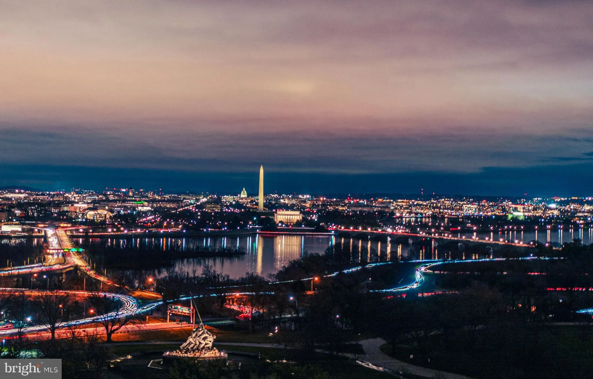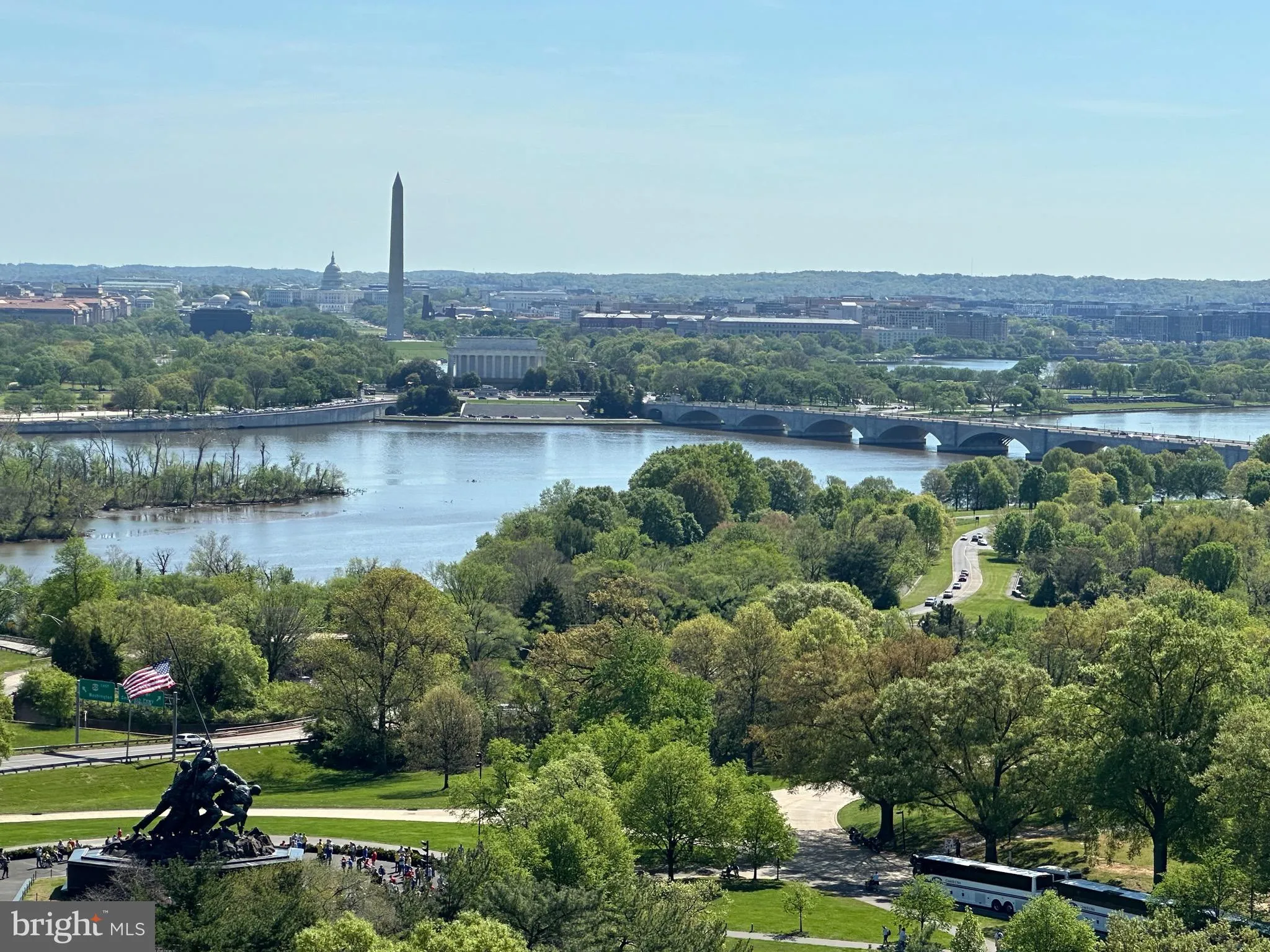 Spacious Rosslyn Penthouse with unbeatable views of DC monuments and skyline, the Potomac and Iwo Jima Memorial. This Penthouse features 3 bedrooms, 4 full bathrooms, roughly 3,500 square feet of living space, ample storage, three garage parking spaces and two large balconies with some of the best views in Rosslyn. Upon entering the main level, you’re welcomed by radiant sunlight that fills the space from the newly installed wall of windows and sliding glass doors (2024), enhanced by the grandeur of 13-foot ceilings and elegant marble floors. A wood burning fireplace gracefully divides the living room and family room. Ornate crown molding accents the rooms while the built-ins in the family room add character and warmth to the space. Ascend several steps to the upper level, where the expansive dining room offers an ideal setting for gatherings. The functional kitchen also enjoys splendid views, presenting an opportunity for the new owners to infuse their style and enhance its allure. Office space is conveniently found on the opposite side of the dining room. Continue into the condo’s dual wings and travel down the main hallway to discover the oversized primary bedroom, boasting ample storage space and a luxurious en suite bathroom. The second wing reveals two additional bedrooms, one of which features its own en suite. One could spend an entire day outdoors between both balconies, enjoying the spectacle of planes soaring overhead, the magnificent monuments and flowing Potomac River which promise to enhance your living experience. Enjoy the 4th of July celebrations with unbeatable views without every leaving your home! The Weslie Condominium offers a concierge, garage parking, manicured grounds, and a fitness center. The property is within a couple blocks of the Arlington Transportation Bus stop and 0.5 miles from the Rosslyn Metro Station. Walking distance to the Iwo Jima national memorial as well as other parks, bike/jogging trails, and just 5 miles from Ronald Reagan National Airport. Penthouse living that seamlessly combines luxury, space, and breathtaking views!