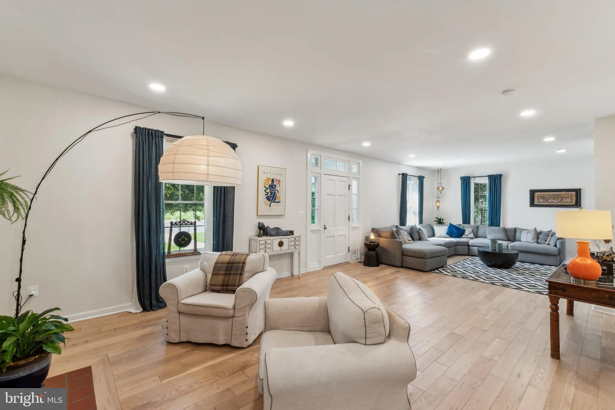 Crafted for seamless connectivity, the home is wired with CAT6 cabling in every room, culminating in a 24-port switch in the attic, accommodating high-speed Verizon Fios gigabit internet. Dimmable recessed lighting throughout enhances ambiance, while custom Elfa closet systems in three of the five closets provide exceptional organization. Custom window treatments in every room complete the picture. Two mounted televisions—in the living room and primary bedroom—are included, along with a statement mirror gracing the fireplace mantel. Wi-Fi controlled heating and cooling ensure year-round comfort.