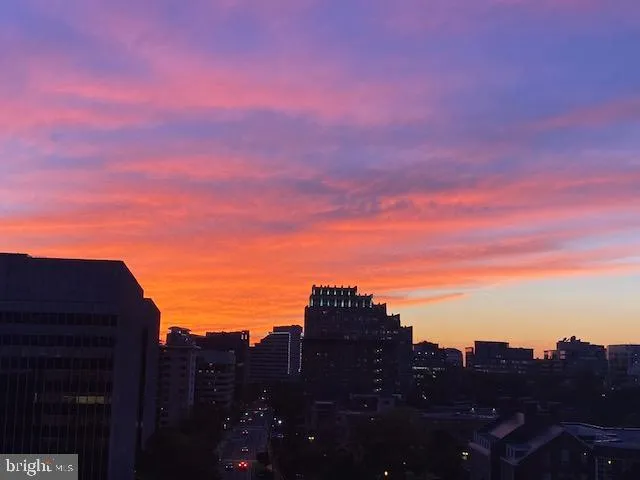 Great investment for your CASH buyers at this price for an 859 SF 1BR w/ GARAGE PARKING in downtown Bethesda!! Also VA financing approved! This spacious 1-bedroom unit features gorgeous hardwood floors throughout, a raised dining area w/ elegant herringbone hardwood design, & sun-drenched interiors that capture the golden hour perfectly from your private west-facing balcony — the ideal spot to watch the sunset each evening & views of the downtown Bethesda skyline! The kitchen features granite countertops, a pantry, & a wine/beverage cooler. There is new lighting in living room & excellent closet space w/ walk-in closets in the living room & bedroom. The bedroom also has an extra sink & vanity w/ access to a full bathroom from the bedroom & the hallway. Garage parking included; building amenities include: 24-hour front desk, fitness center, party/meeting room, guest parking, rooftop pool & a rooftop deck w/ sweeping views, watch the Columbia Country Club Fireworks firsthand!. All just steps from shops, dining, & METRO!
