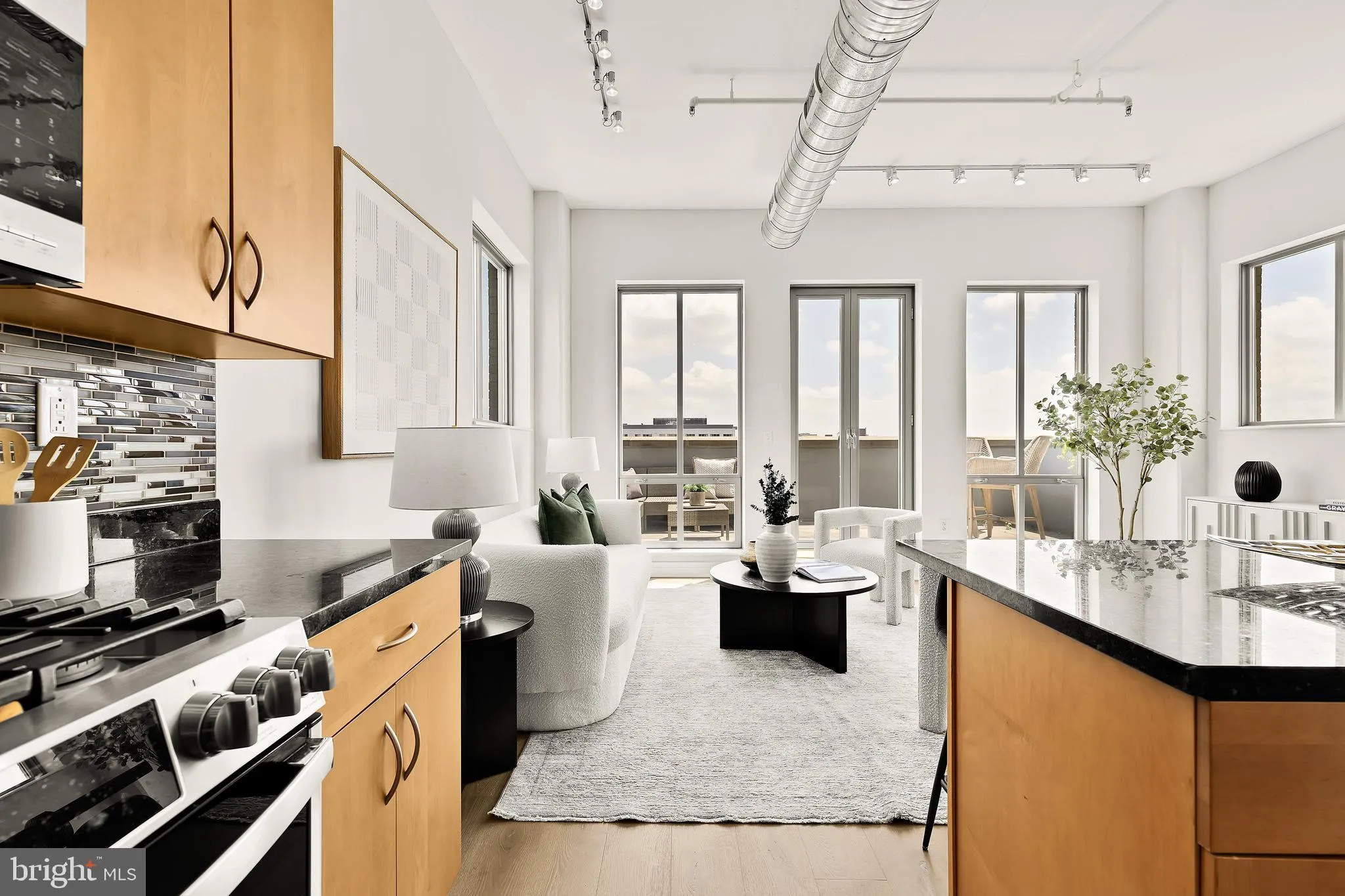 Penthouse perfection awaits at 301 Massachusetts Ave NW #1103, where high ceilings, oversized windows, and sweeping city views create a dramatic backdrop for everyday living. This 2-bedroom, 2-bath, 1-den stunner spans over 1,200 square feet of open, sun-soaked space with chic industrial touches and a smart, flowing layout. The sleek kitchen features stainless steel appliances, gas cooking, kitchen island, and built-in wine fridge, ideal for casual dining or cocktails with friends. A proper foyer, ample closet space, newer HVAC, and updated flooring round out the comforts. Set in The Sonata—a boutique, pet-friendly building with concierge service, an included garage parking space, and a rooftop deck with skyline views—this home puts you blocks from Union Station, Metro, NoMa hotspots, and Mount Vernon Square. Bold, bright, and beautifully elevated.