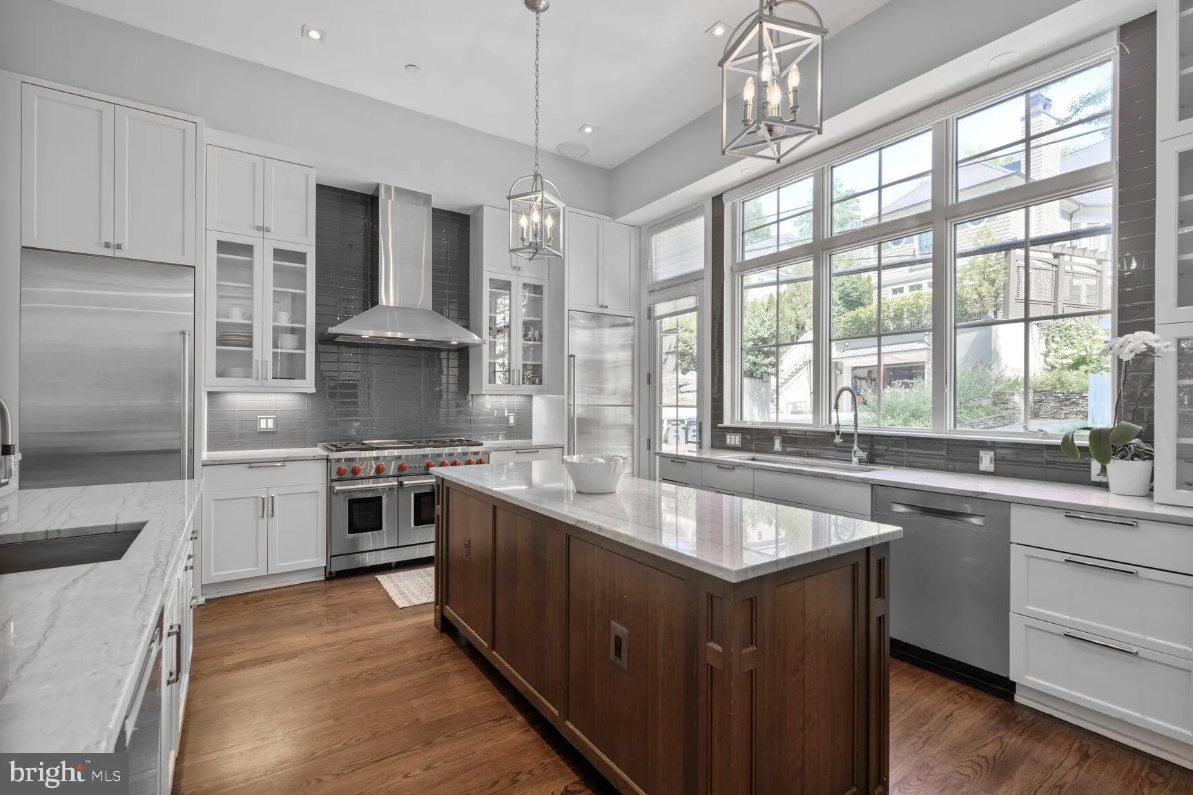 Situated in the heart of Kent adjacent to Key Elementary, this light filled home blends sophisticated formal spaces with a modern open floor plan creating a private oasis in the middle of Washington D.C.! Featuring 7,100SF across four finished levels, this residence truly has it all including 8 bedrooms, 7.5 baths, spacious entertaining areas, private offices, media room, exercise room, indoor spa area, game room, wine cellar, elevator to all levels, outdoor terraces, garage and more. Originally built in 2016, the home features top-of-the-line finishes, custom millwork, and premium appliances throughout. Expansive floor-to-ceiling windows in the vaulted family room and gourmet kitchen are a showstopper and flood the main level with natural light, which also opens to a serene side patio. This level also includes formal living and dining rooms with gas fireplace, office/optional bedroom with full bath, powder room, and mud room with direct access to the two-car garage. The open stairway leads to a second level with a luxurious primary suite that includes two walk-in closets and en-suite bath with double vanities, soaking tub, and shower. Three additional bedrooms, two baths, laundry #1, and a charming front porch complete this floor. All the fun is found on the third level with a large game room, wet bar, access to a top floor deck with fireplace, two additional bedrooms, full bath, and storage. The fully finished lower level, which also serves as the perfect guest suite, offers a private media/rec room, spa with jacuzzi and steam shower, wine cellar, exercise room with full bath, bedroom/optional office, and laundry room #2. Located just minutes from Georgetown, Virginia, and Maryland, with easy access to all area airports, this neighborhood is coveted for its close proximity to the conveniences of the city coupled with the privacy and quiet of residential living. Residents enjoy several nearby shops and restaurants (Et Voila, Bambu, Sweet Agave, Bistro Aracosia, Starbucks & more), as well as neighborhood amenities such as the Palisades Rec Center and Playground, Sunday Palisades farmer’s market, the Capital Crescent Trail, and Battery Kemble Park.