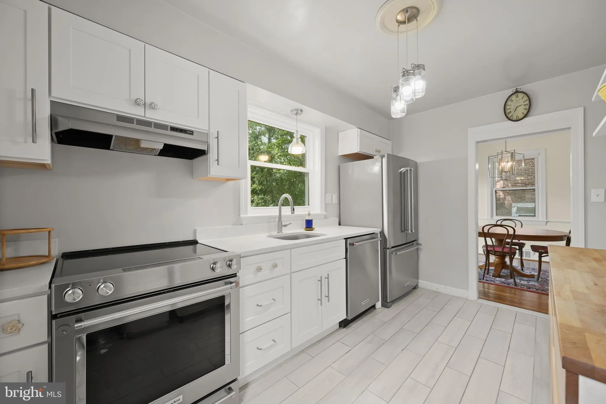 Brimming with charm and modern updates, this classic brick colonial has been thoughtfully updated to include a renovated full bath and a newly improved lower level, blending timeless appeal with today’s comforts in an ideal Takoma Park location. A lush front herb and rose garden leads to a covered front porch, setting a warm and welcoming tone before you even step inside. Hardwood floors flow throughout the main level, beginning in the spacious living room where a bay window frames views of the front yard. The fireplace adds character and is currently nonfunctional, but can easily be made functional once again. In the adjacent dining room, chair rail molding and a sliding glass door connect seamlessly to the oversized back deck, perfect for entertaining or everyday enjoyment. The renovated kitchen balances style and efficiency, featuring white cabinetry, quartz countertops, and stainless steel appliances. Additional cabinetry on the opposite wall, topped with a butcher block counter, provides bonus prep space and storage. A recently updated powder room on the main level adds to the home’s everyday functionality. Upstairs, three bright bedrooms share a renovated full bath featuring a tiled tub/shower surround and an updated vanity, blending classic and contemporary finishes. The lower level has been renovated and now offers flexible space ideal for recreation, working from home, exercise, or a variety of other needs. Step outside to find a private and expansive backyard bordered by mature trees, offering plenty of space to relax, play, or garden. The oversized deck has been freshly stained and updated with new beams. Additional recent improvements include chimney coping and masonry updates, new exterior steps on the side of the house, and a rewired circuit breaker panel prepped for future expansion. Ample street parking adds everyday convenience for you and your guests. Just moments from Sligo Creek Park and its miles of trails and green space, this home is ideally located near downtown Takoma Park, the Metro, three major bus lines, and the soon-to-open Purple Line. With Washington, D.C. only minutes away, you’ll enjoy the perfect mix of character, convenience, and connection. Please note: some photos have utilized virtual staging.