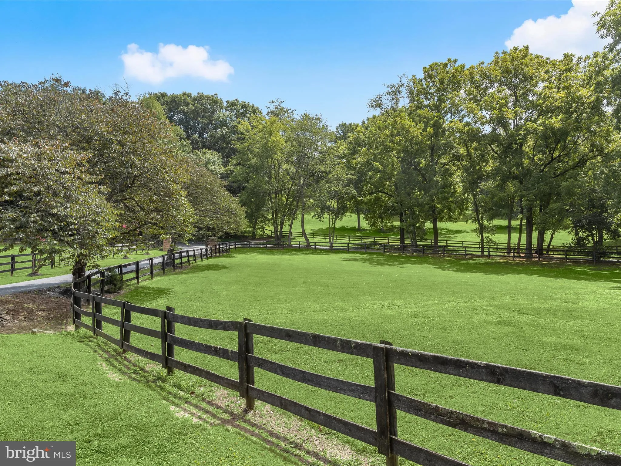 Set on 25 picturesque acres with a meandering creek, this world-class equestrian estate offers an unparalleled blend of professional horse facilities and refined country living—all within an easy drive of Washington D.C., Baltimore, and Northern Virginia. Designed with precision, care, and comfort in mind, the property is turnkey for the serious equestrian, trainer, or discerning private owner. At the heart of the farm are two exceptional barns, totaling 45 stalls, thoughtfully designed for safety, convenience, and efficiency. The main barn boasts 29 matted stalls across two wide 12-foot aisles, each equipped with its own fan, light, and timed outlet. Amenities include a climate-controlled lounge, two spacious tack rooms, a wash stall, an insulated laundry room, a utility room, and a massive loft with guest accommodations. Dedicated farrier lighting and ample tractor clearance make daily operations effortless. Just steps away are an indoor arena, a large shavings shed, an additional 7 stalls, and a hay storage container that keeps dust to a minimum. The second barn offers 9 matted stalls, a charming guest room, a full bath, and a two-bedroom suite ideal for visiting riders or staff. A vehicle lift in the barn provides space for on-site equipment maintenance. For the rider, the property features a large 60×120′ indoor arena with sand footing and lighting, powered by a leased solar panel array with five inverters in the attached workshop. Outdoor training spaces include a 175’ x 275’ arena with new footing, a 48-foot covered round pen, and a 4-horse ProWalk hot walker. Pastures are immaculately maintained, enclosed by safe wood fencing, and laid out for ease of rotation and turnout. Additional accommodations include a caretaker’s cottage and barn apartment, both updated for comfort and practicality. The four-bedroom main residence blends casual elegance with warmth, featuring hardwood floors, two gas fireplaces, a great room with brick-surround fireplace, cathedral ceilings, and skylights, a formal dining room with built-ins, crown molding, and designer lighting, and a main-level primary suite with the flexibility to expand. The updated kitchen with island and stainless steel appliances, granite counters, opens to light-filled living spaces, and the unfinished basement with rough-in offers room to grow. The upper level provides three spacious bedrooms, one with an en-suite bath with a soaking jetted tub, a walk-in shower, and a walk-in closet. Outdoor living is elevated by a newly remodeled heated inground pool with fountains, new tile and plaster, a sun deck, and a covered patio surrounded by lush perennial gardens. Additional amenities include a Two-car attached garage with EV charger, an RV garage with 16-foot ceilings, 14-foot doors, and 100-amp service, designed for Class A RVs, large living quarter horse trailers, or future conversion to a gym, basketball court, breeding facility, or stallion station. Every detail of this estate, from the safe fencing to the solar power, from the manicured arenas to the luxurious living quarters, has been crafted for the ease of care and enjoyment of horse and rider alike. With proximity to top equine veterinary hospitals and premier showgrounds, this is a rare opportunity to own one of Montgomery County’s finest equestrian properties. Shown by private appointment only.