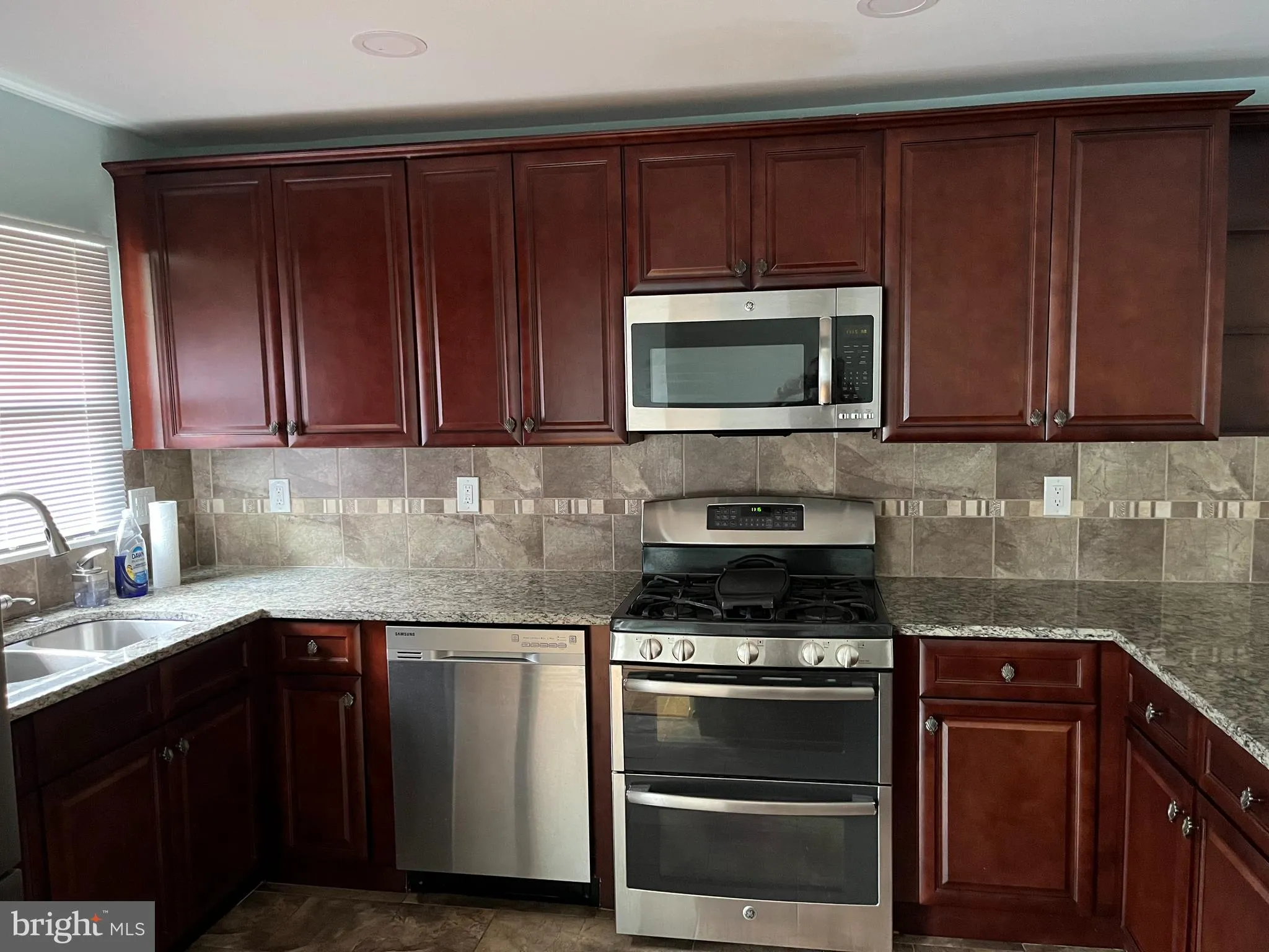 This charming, 3-bedroom, 3-full bathroom, all-brick home is nestled in the desirable North Springfield subdivision of VA. The main level features beautiful hardwood flooring throughout, creating a warm and inviting atmosphere. The modern kitchen boasts granite countertops and stainless steel appliances, perfect for cooking and entertaining. The upstairs living room, which includes a working fireplace and a sliding door that leads to a lovely brick patio, provides seamless indoor-outdoor flow. The patio area is surrounded by lush trees and bushes, making it an ideal spot for relaxation and enjoying nature, and perfect for those who love privacy such as a fenced-in backyard.