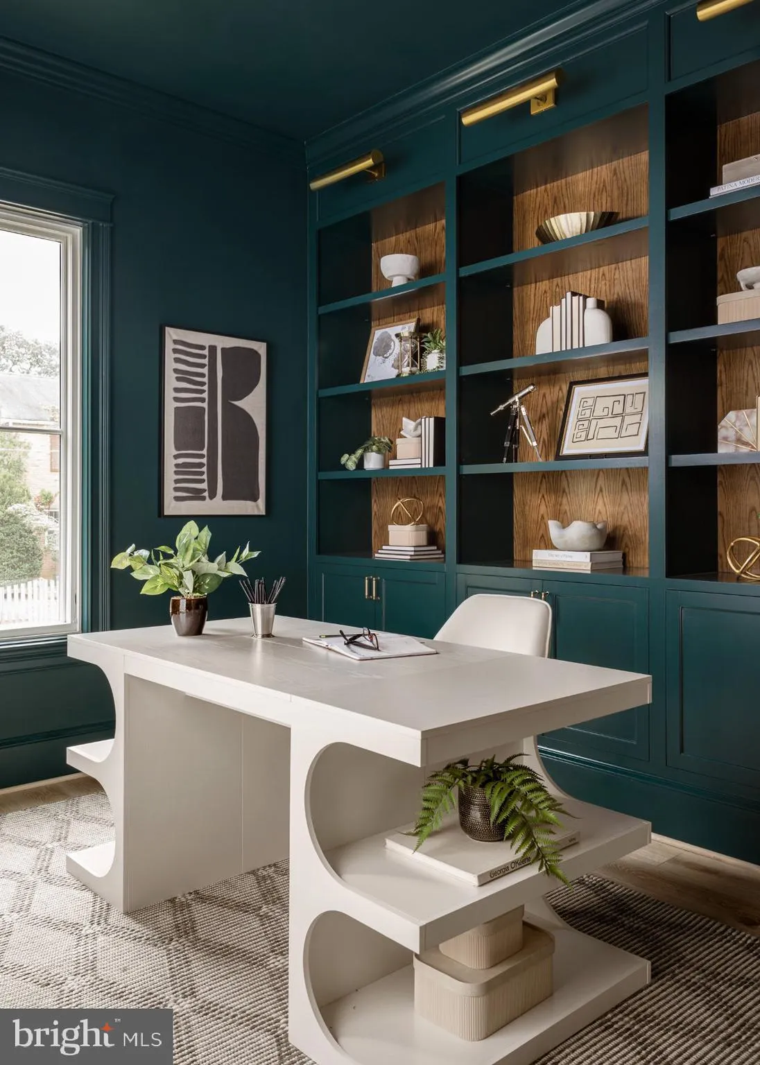 Inside the main home, you are greeted across the foyer by the home studio with custom built in cabinetry and lighting. The dining room, enveloped in elegant wainscotting connects to the Thermador clad chef’s kitchen through a butler’s pantry and walk in. Once in the open chef’s kitchen, unwind at the custom built 10 foot island with bar seating and look out into the open living area and fireplace surrounded with custom milled mantle piece . A breakfast nook looks out to the backyard and flagstone covered porch, while a mudroom with built in cabinetry and storage connects through the back of the house.