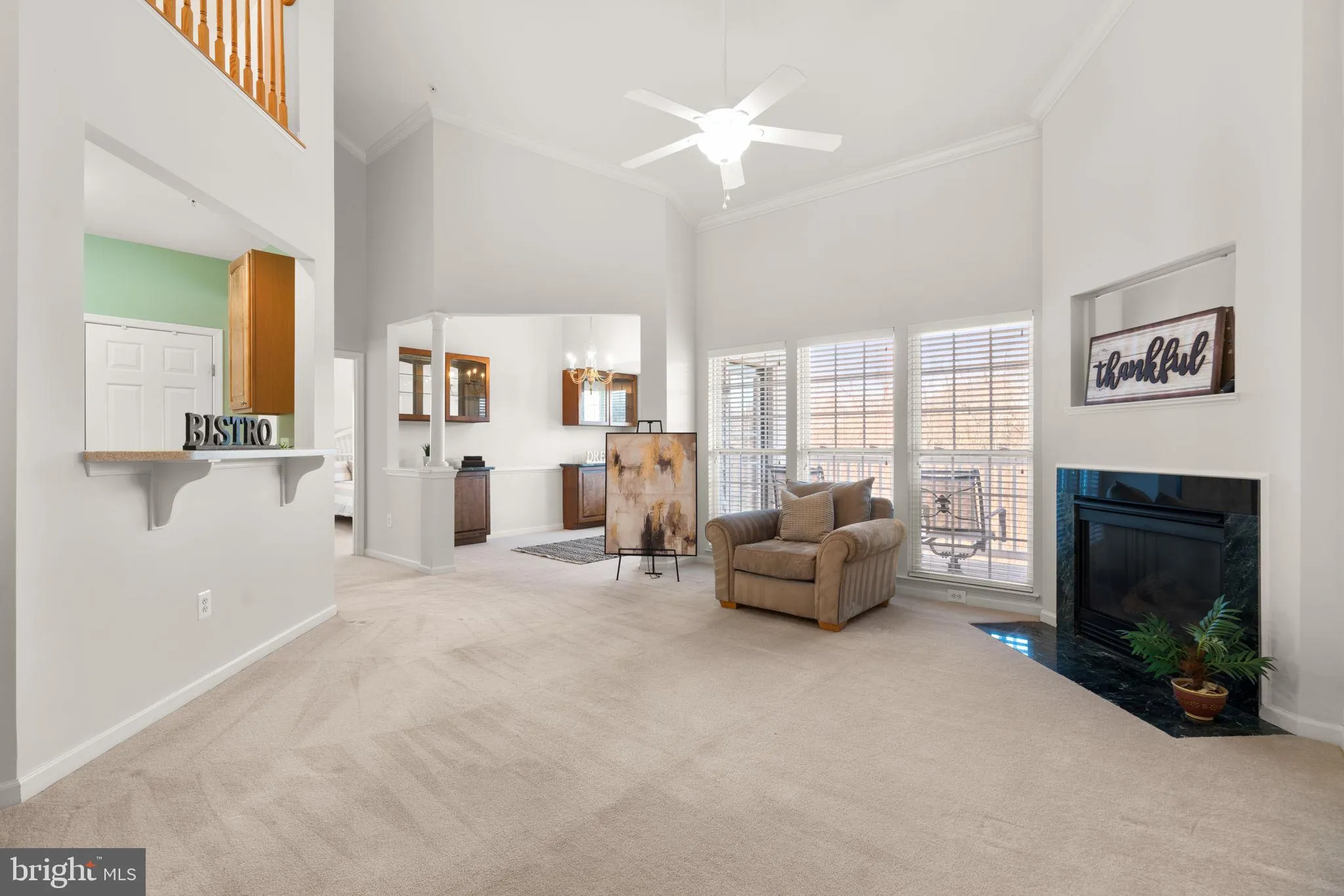 Penthouse-level condominium residence with 2 bedrooms, 2 bathrooms, and 1,330 finished square feet in the amenity-rich 55+ community of Hearthstone at Village Crest Condominiums. Beautifully maintained and freshly painted, the open-concept interior features updated lighting throughout. Step into the spacious, carpeted living room where soaring ceilings, abundant natural light, and a cozy fireplace create a warm, welcoming atmosphere. A separate formal dining room, defined by elegant columns, features a chair rail, chandelier, and built-in upper and lower cabinetry for china display and storage. The kitchen sits just off the living room and is designed with a convenient pass-through window with breakfast bar seating, opening the flow of the main living areas. Enjoy ample counter space, abundant cabinetry, a pantry, and laundry facilities for everyday functionality. Two comfortable, carpeted bedrooms each feature an attached full bathroom. The generous owner’s suite offers a walk-in closet with a custom organization system and a spacious bathroom complete with dual sinks, a handicap-accessible walk-in bathtub, and a separate shower. Adding even more flexibility is the upper-level loft; a versatile space perfect for a home office, reading nook, hobby room, or additional lounge area. Relax outdoors on the covered balcony with peaceful wooded views. The building offers secured entry with key access, plus elevator service for added convenience. Community amenities are plentiful and include a clubhouse, indoor and outdoor pools, fitness center, tennis courts, and a playground, providing a vibrant, active lifestyle in a serene setting. total sq ft 1658 including loft which is rare. *Back on Market – Buyer could not perform*