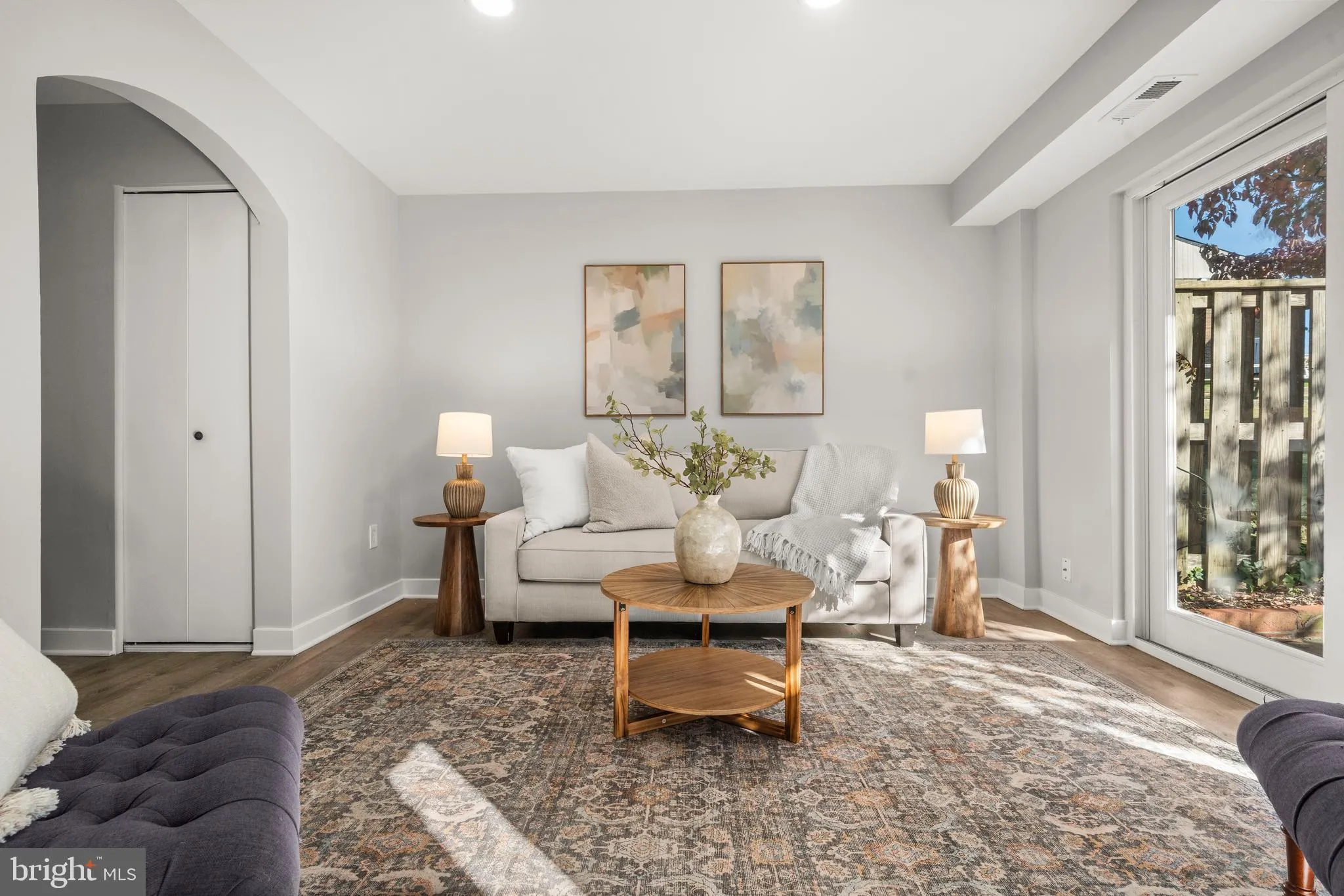 This bright and stylish two-bedroom condo has been thoughtfully renovated from top to bottom, blending modern design with everyday comfort. The sunny living room welcomes you with new sliding glass doors that open to a spacious, private front patio, perfect for morning coffee or evening gatherings. A trio of graceful arches connects the living room to the formal dining area, creating an open, inviting flow for entertaining.