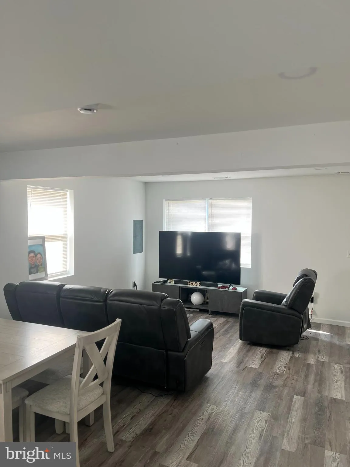 This two-level home offers a bright, open atmosphere filled with both natural light and thoughtfully placed recessed lighting, including a skylight-style ceiling window that adds extra charm.
