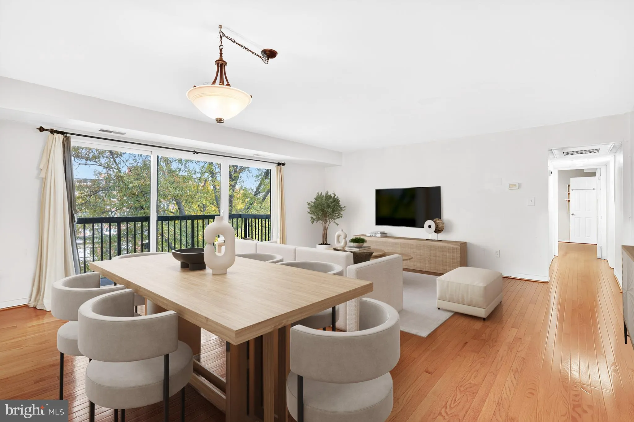 Don’t miss this delightful 2-bedroom, 2-bath penthouse-level unit nestled within the charming Bolling Brook Condominiums. Step inside to a bright and airy interior where hardwood floors flow gracefully throughout the main living spaces. The well-appointed kitchen features updated wood cabinetry, tiled flooring, granite worktops, a tiled backsplash, and white appliances, including a new refrigerator and dishwasher (2025). Beyond the kitchen, the inviting living and dining area opens to an expansive balcony framed by mature trees, a tranquil retreat ideal for enjoying your morning coffee or relaxing as the sun sets. The owner’s suite features a ceiling fan, ample closet space and a newly added en-suite bath with a custom tiled walk-in shower. A secondary bedroom is filled with natural light and features mirrored closet doors for an added touch of brightness and space. Across the hall, the updated full bath (2025) impresses with contemporary finishes and a tub/shower combo. Additional comforts include a full-sized washer and dryer and an assigned parking space, ensuring both ease and convenience in everyday living. Ample visitor parking is available throughout the community. Residents enjoy access to a lovely pool, playground, and beautifully landscaped grounds shaded by mature trees. Perfectly situated, this home is just two blocks from Harris Teeter, Starbucks, a fitness center, and a selection of restaurants, adding convenience to this prime location.