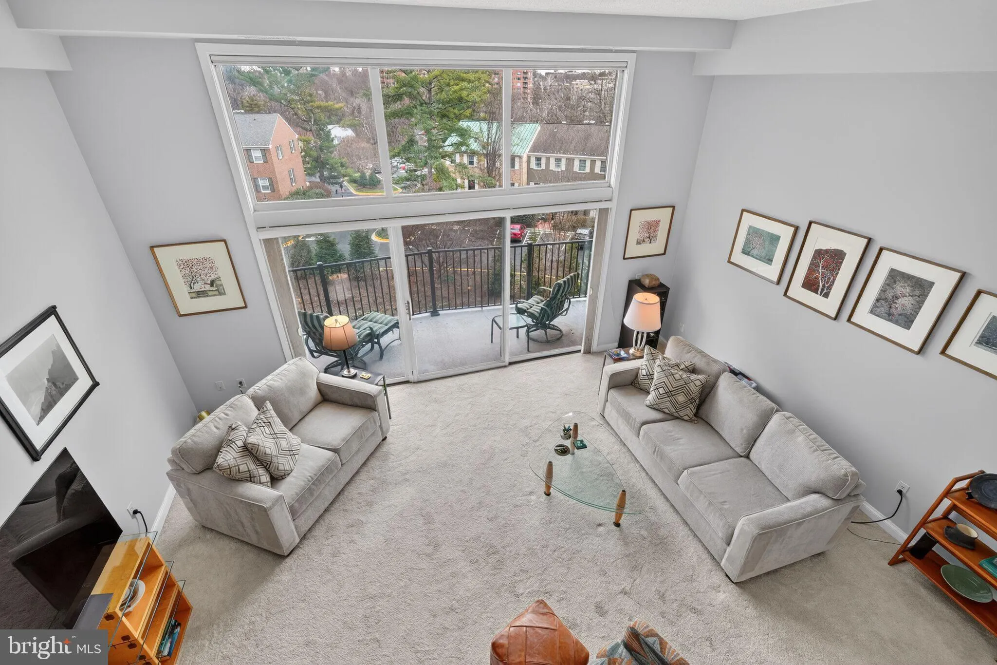Experience elevated urban living in this striking fifth-floor, two-level residence at Sutton Towers. Anchored by a dramatic 12.5 foot ceiling and a full-height glass wall, the home is flooded with natural light and opens to a private balcony with views of the Washington National Cathedral.