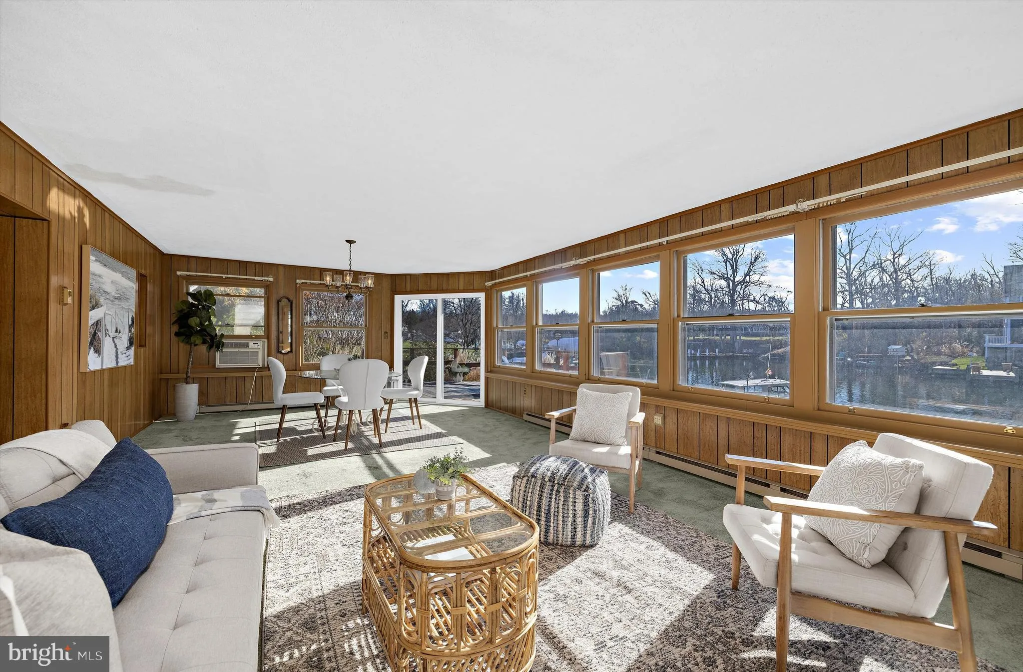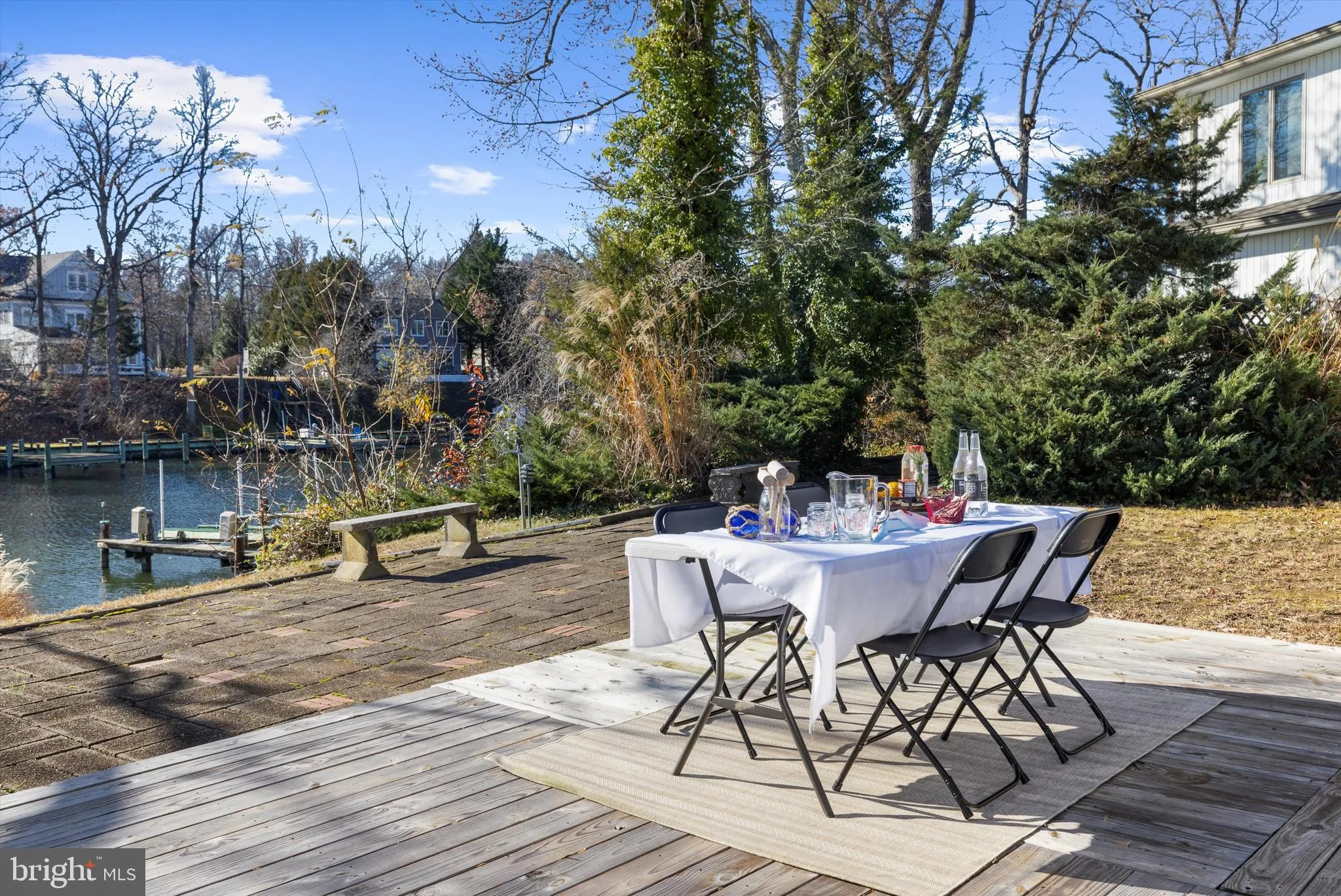 Serene cottage, perfect for coastal living. Waterfront rancher located on a private road, offering scenic views. A paved circular driveway welcomes you to the property, highlighted by a beautiful magnolia tree at its center. Featuring a charming galley kitchen, 2 spacious bedrooms (virtually staged), 2 full baths, and an open living room with a pellet stove that flows into the dining area and family room. A deck off the living space provides an inviting outdoor dining area, and the large rear yard offers multiple spaces for enjoyment and relaxation.