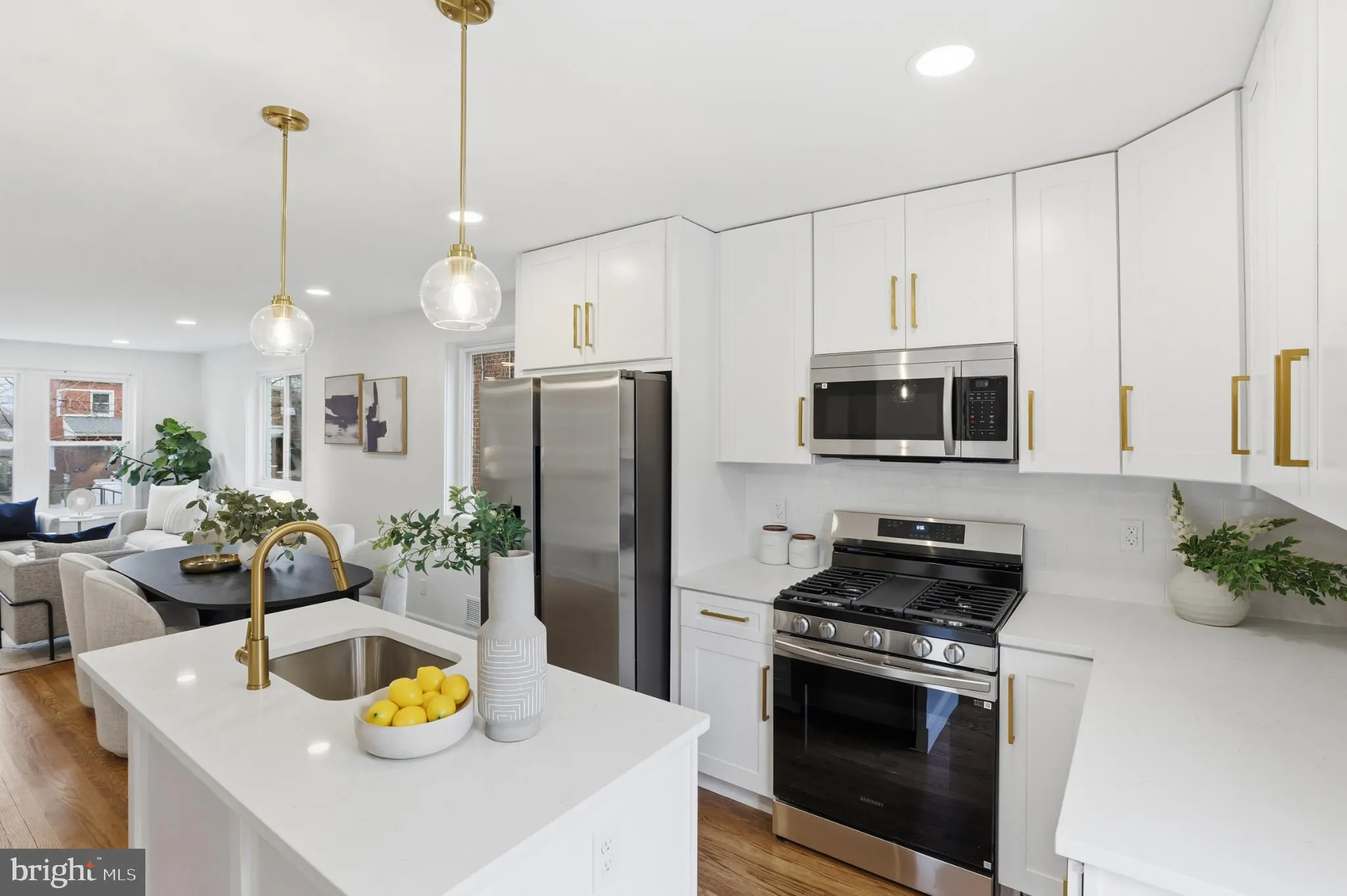 Welcome to this beautifully updated semi-detached home in Brookland, offering modern comfort, a fully fenced yard, and effortless convenience. The interior has been completely renovated and is truly move-in ready. The main level features an open concept layout with refinished hardwood floors and a stunning gourmet kitchen equipped with quartz countertops, stainless steel appliances, and a center island. This level also includes a convenient half bath and direct access to the fenced backyard, which features a patio and a brand-new deck. Combined with the inviting front porch, this home offers multiple outdoor spaces ideal for entertaining. The upper level includes three bright bedrooms and a full bath. The fully finished basement provides exceptional flexibility with a spacious rec room, a bonus room, a full bath, and a walk-up exit. This level works well as an in-law suite, guest space, or for income potential. Additional updates include a new water heater for added peace of mind. This home is perfectly located near the Fort Totten Metro Station with access to the Red, Yellow, and Green lines. Commuting to Catholic University, Downtown DC, Capitol Hill, and Maryland is easy. The neighborhood features tree-lined blocks, a strong sense of community, and convenient access to the Metropolitan Branch Trail. Enjoy nearby favorites such as the Monroe Street Arts Walk, the Brookland Farmers Market, and the many restaurants along 12th and Monroe Streets NE. Area conveniences include the new Aldi, Trader Joe’s, Walmart, the renovated Lamond Riggs Library, Turkey Thicket Recreation Center and pool, the Capital Area Food Bank, Food and Friends, and the gardens at the Franciscan Monastery. Do not miss this rare opportunity to own a charming and fully updated home in a peaceful yet well-connected Brookland location.
