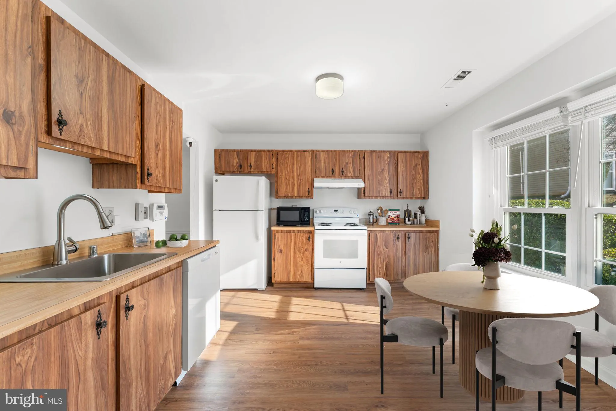 Freshly painted and move-in ready, is filled with natural sunlight as you walk in the foyer. The home offers brand-new carpeting, new vinyl plank flooring in the kitchen, oak cabinetry, and new appliances including a refrigerator, electric stove, and dishwasher. A full-size washer and dryer are included for added convenience.