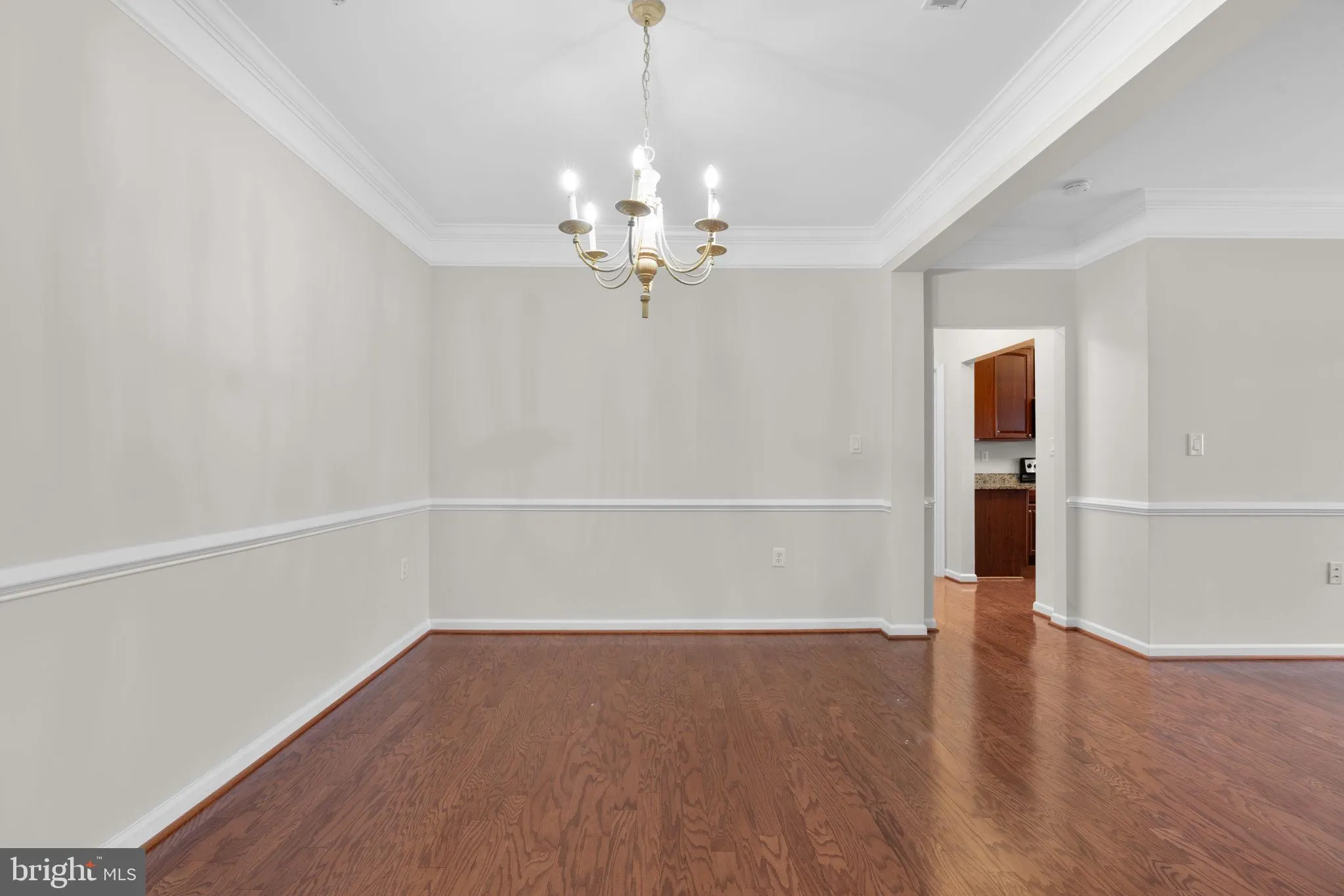 Hardwood floors flow throughout the freshly painted interior, where picturesque views of the golf course can be enjoyed from every window. The welcoming foyer opens to a formal dining room accented by chair railing and a chandelier, then continues into the spacious living room filled with abundant natural light.