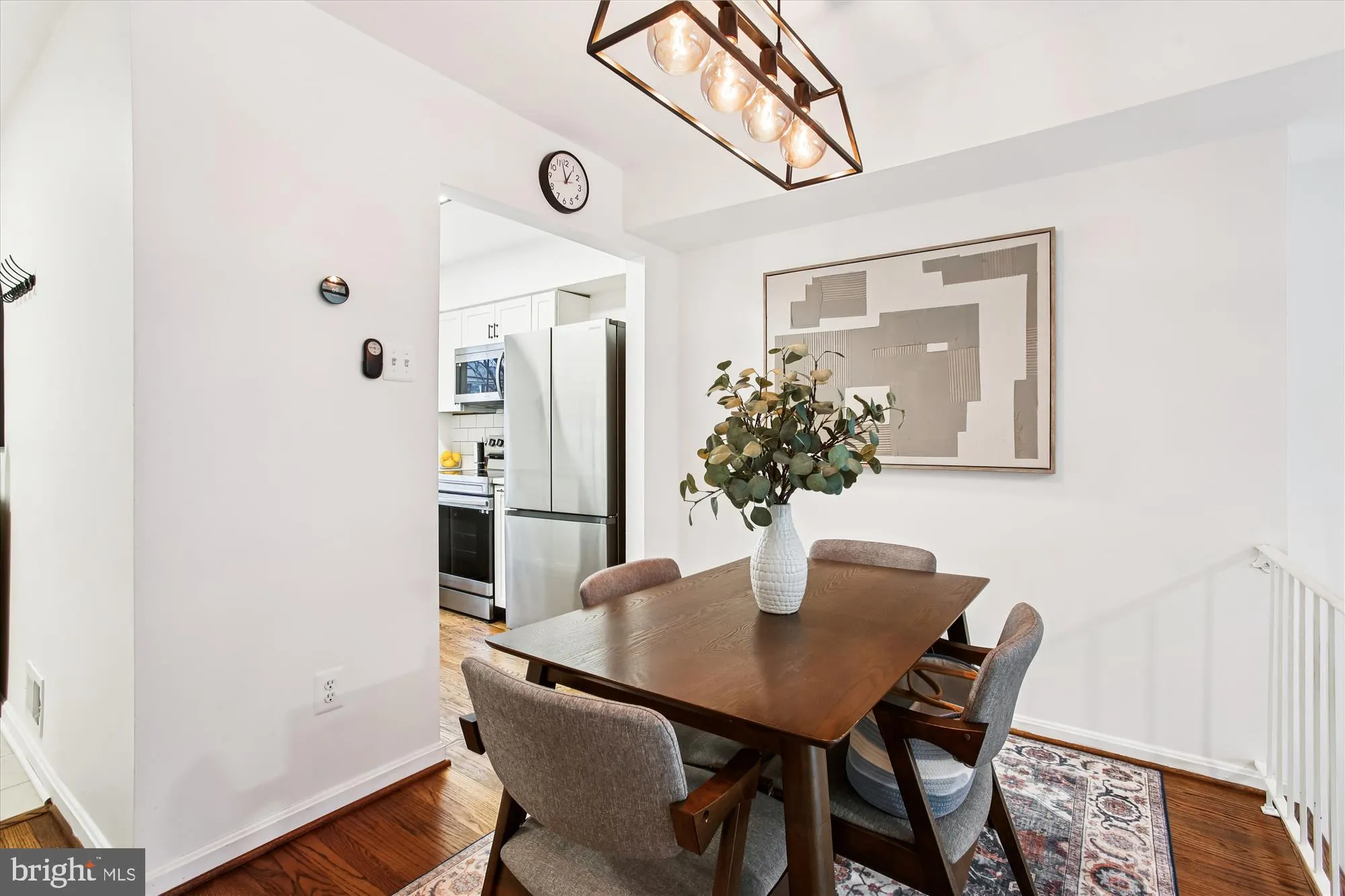 Renovated and pristine throughout! This charming and spacious 3 level townhome has it all. Rich hardwood floors, crisp fresh paint, beautiful kitchen and baths, light filled living spaces, generously sized bedrooms, a fully finished walkout lower level, and a peaceful backyard setting! The stunning kitchen has white...