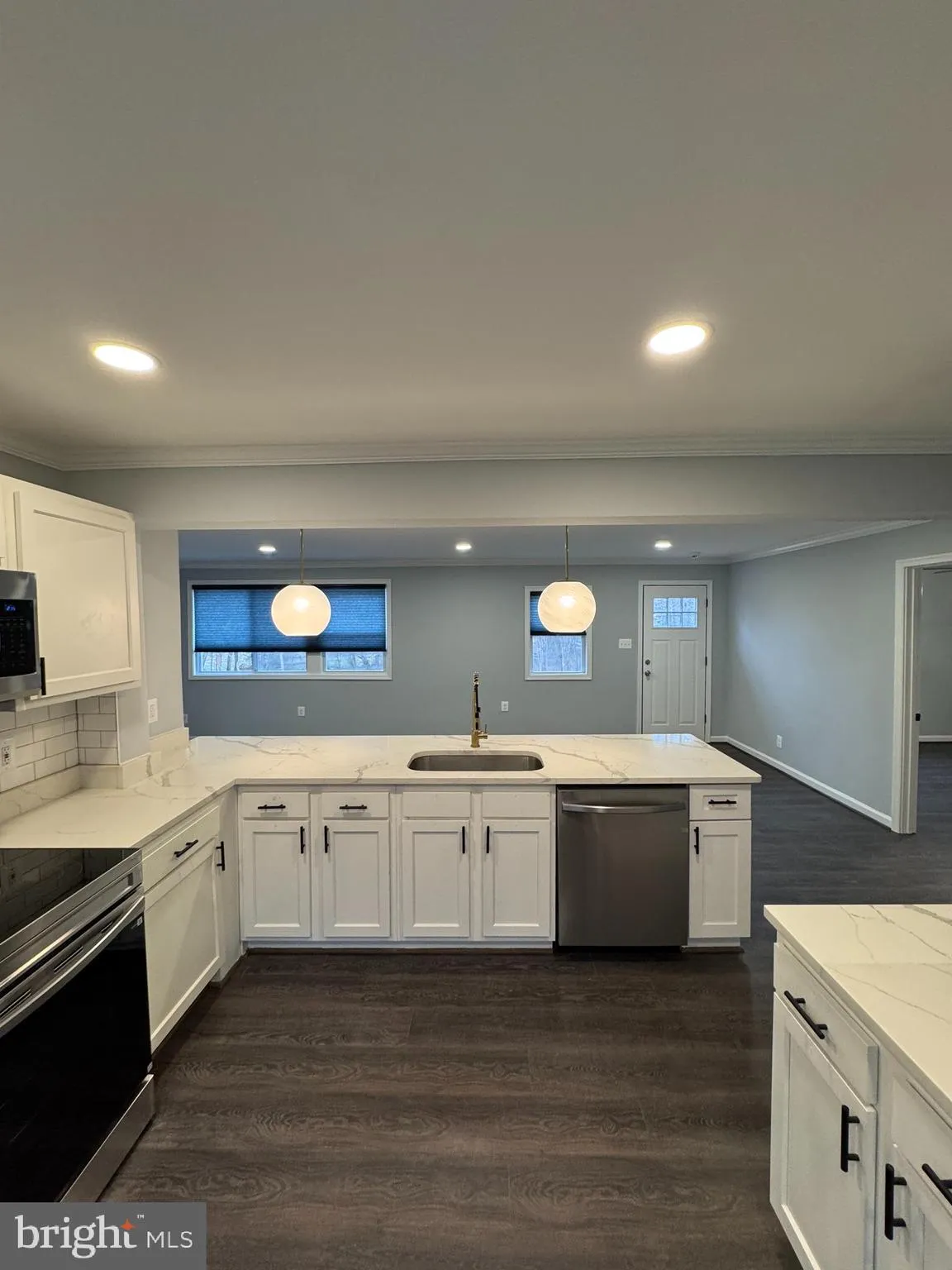 The interior is filled with natural light from abundant windows and showcases warm, high-quality upgrades throughout. The large, spacious kitchen boasts quartz countertops, new stainless-steel appliances, a beautiful backsplash, and a huge island—perfect for gatherings. The kitchen flows seamlessly into a generous living and dining area.