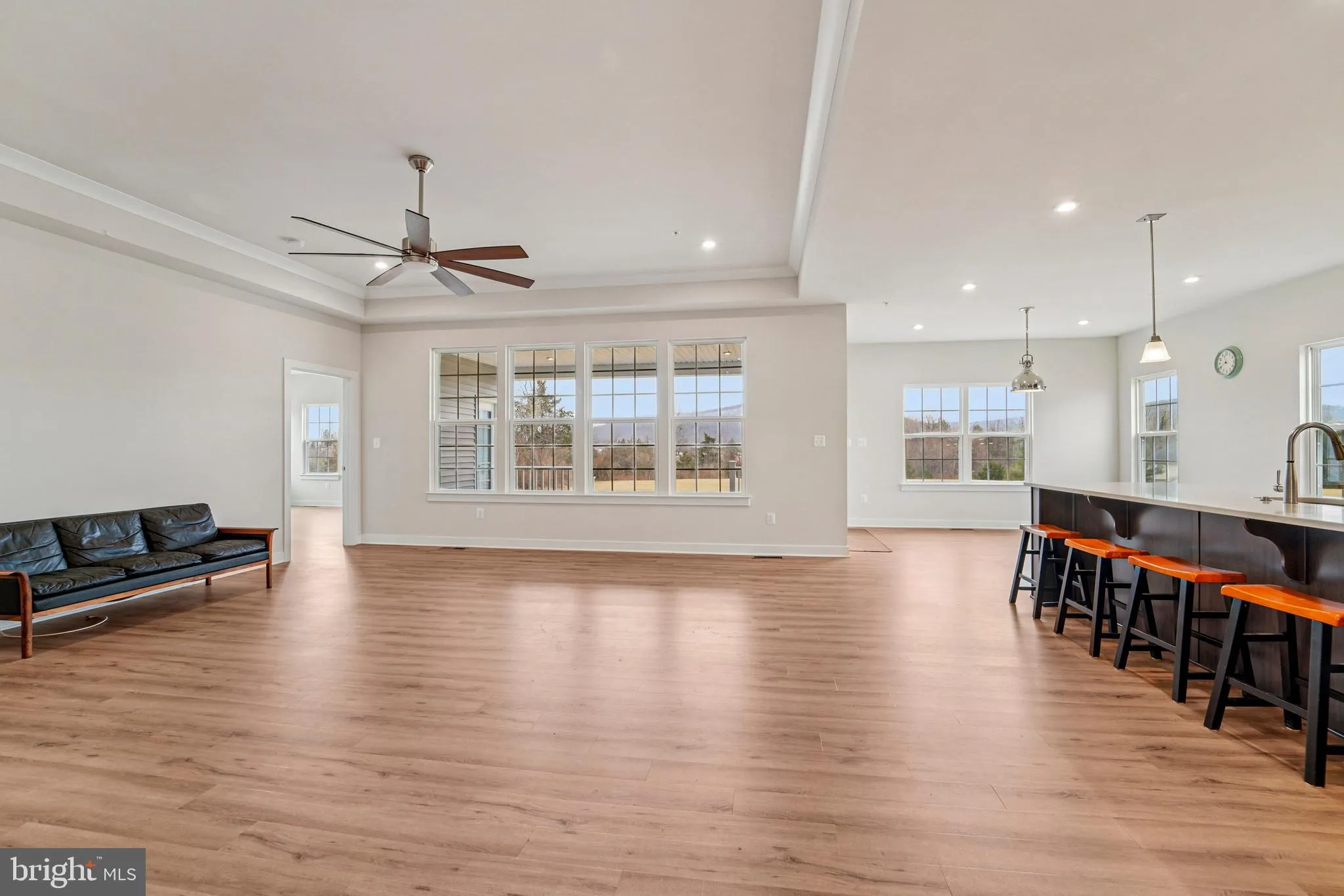 The family room features tall ceilings, recessed lighting, and a tray ceiling adding elegance to the space. The custom kitchen is fully equipped with stainless steel appliances, a gas stove, and a spacious island with plenty of seating. Host all of your family gatherings in the large dining room. The family room flows into the kitchen and dining area, so the conversation never stops.