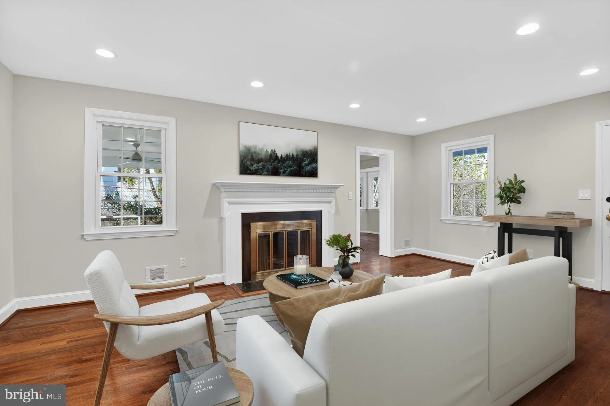 Stunning 4-bedroom, 3-bath single-family colonial nestled on an expansive 8600+ sq ft lot in the highly coveted Bradley Hills neighborhood, located within walking distance to Capital Crescent Trail which leads right into Bethesda Row. Designer finishes welcome you to this light-filled home featuring recessed lighting and hardwood floors throughout. The spacious chef’s kitchen boasts beautiful white cabinets, granite countertops, gas cooking, and a well-situated breakfast nook with butler’s pantry. Enjoy a quiet morning while savoring your morning coffee surrounded with ample natural light via large windows while taking in the peaceful views of the rear yard. This home is an entertainer’s dream- presenting an inviting living room with a wood-burning fireplace and added recessed lighting completed in 2020, a formal dining room with bay window and built-in cabinetry, and an impressive family room addition with direct access to an enclosed patio remodeled in 2022. The result is a seamless indoor and outdoor living experience designed to be enjoyed year-round. A nearby wet bar and full bathroom complete this level. When ready to unwind, retreat upstairs to the spacious owner’s suite, featuring a walk-in closet with an adjustable closet system and a fully renovated en-suite bath (2020) featuring a contemporary vanity and custom tiled walk-in shower. Down the hall are three additional generously sized bedrooms, each with ample closet space, and an updated full bath with tub/shower combo. The partially finished basement includes carpet, built-in shelving, and generous cabinetry, offering flexible space ideal for an in-home office, gym, or hobby area. The unfinished laundry and utility space features a new washer and dryer installed in 2023, an additional upright freezer (2022), and abundant storage options. Outdoor entertaining truly shines in the fully fenced rear yard, surrounded by mature trees for privacy and tranquility, and enhanced by a stone patio, retaining wall with boulder steps, and a thoughtfully landscaped backyard with a kids’ playset. Host the perfect summer BBQ or enjoy an evening drink under the stars in this peaceful outdoor haven. No HOA, yet part of the South Bradley Hills Neighborhood Association, where frequent block parties and social events create a welcoming sense of community. Long driveway and freshly installed parking pad (2022) now offer off-street parking for up to 4 cars. Ideally located within one mile of Bethesda Row, this home offers easy access to popular dining and shopping destinations, and the Bethesda Metro (red line). A wonderful opportunity to enjoy life in the heart of Bethesda!
