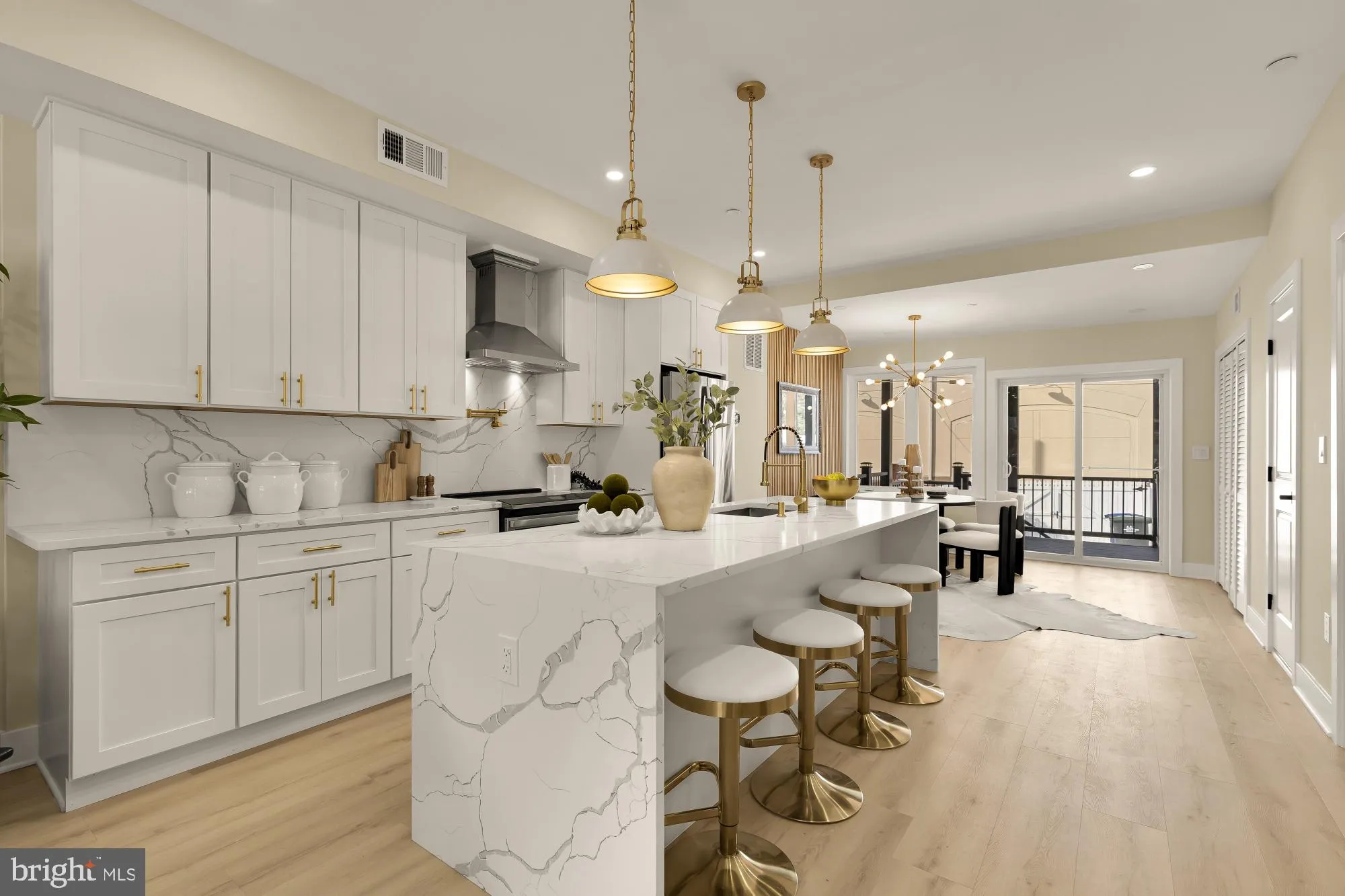 Welcome to 5110 9th Street NW, a 1925 Federal-style Petworth rowhome that was renovated in 2024 and positioned directly across from Lorenzo Park. The main level is designed for easy day to day living and entertaining, with an open layout that connects the kitchen, dining, and living spaces. The kitchen delivers a crisp, modern look with quartz countertops and a matching backsplash, a large island with seating, and a drawer microwave, plus a dedicated wine storage area that sits close to the entertaining space. Casement windows bring in strong natural light while helping the home stay comfortable through the seasons.