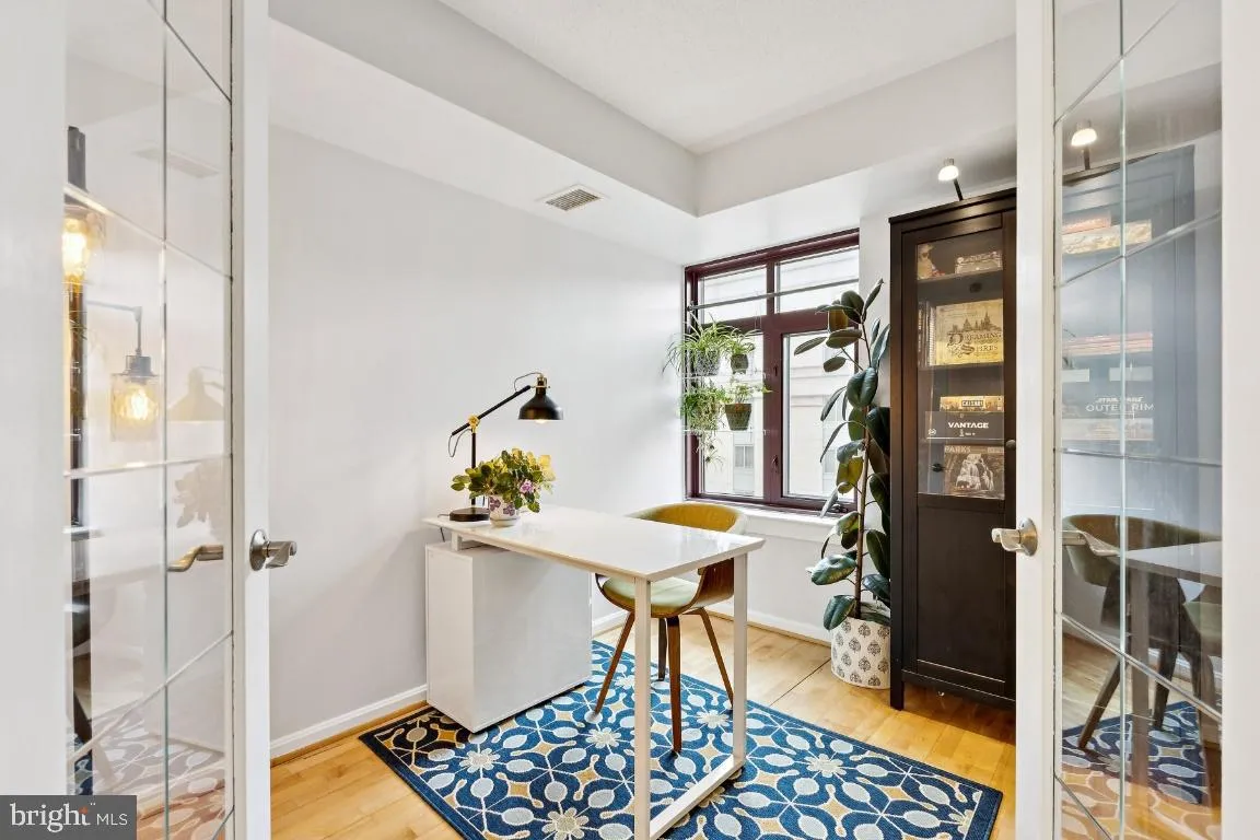 Updated 1-bedroom + den condo at the Charleston in the heart of Courthouse just 3 blocks to the Courthouse Metro station. 1-assigned parking spot (PS20), 1-assigned storage unit (Storage 3 #52 on 1st garage level). The 2021 renovated kitchen features modern cabinetry, quartz counters, stylish two-toned ceramic backsplash, and stainless appliances, flowing directly into the living and dining space. A 2025 bathroom refresh delivers a clean, contemporary look. Hardwood floors run through out the unit. Enjoy the convenience of an in-unit washer and dryer, plus a spacious primary bedroom with a walk-in closet and Elfa shelving organizers. The den offers flexible space for a home office or guest area. The enclosed balcony provides additional year-round living space and natural light. Building amenities include 24-hour security desk, swimming pool, and a fitness room. Three blocks to the Courthouse Metro and easy access to restaurants, shops, and everything the Courthouse and Clarendon neighborhoods have to offer. $817 / Month includes: security, water, trash, sewer. Electricity is billed monthly at $45.83/month by the Condo Association.