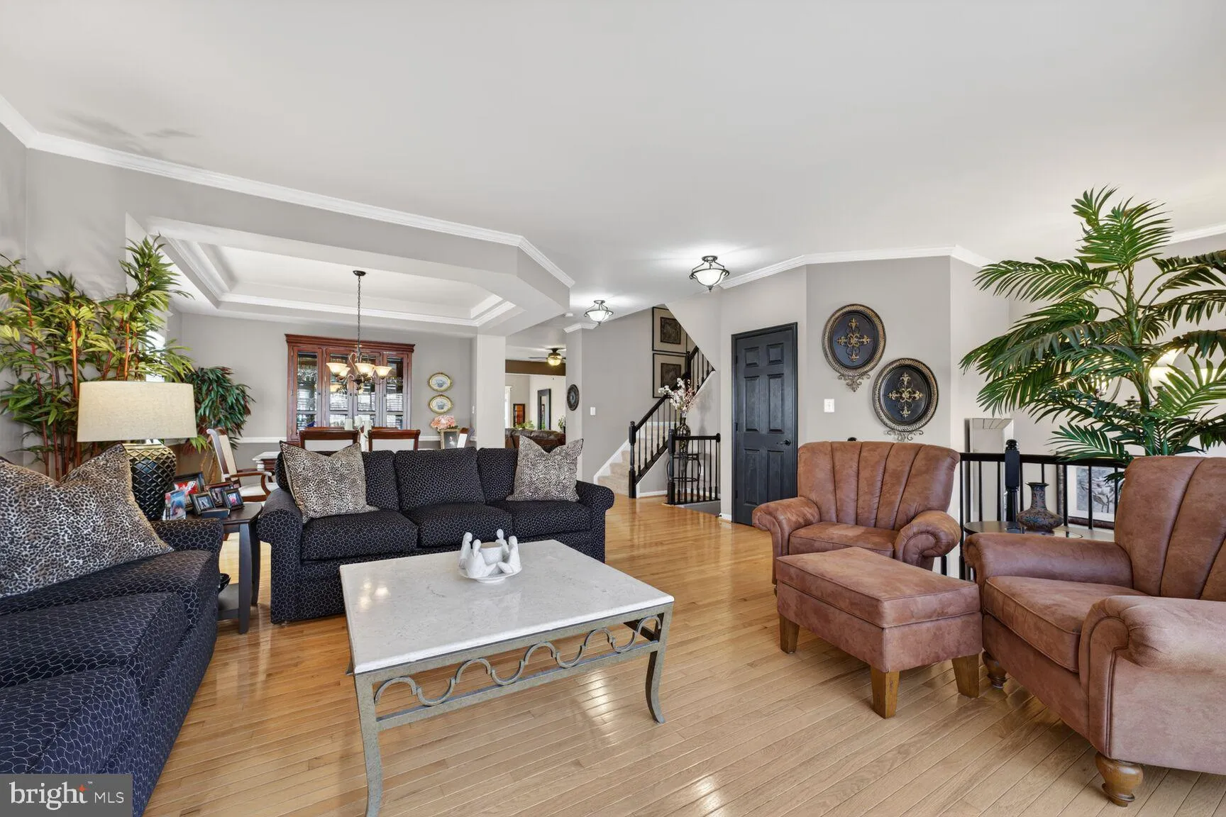 Welcome to 6697 Ordsall Street, a beautiful end-unit Eastland model in Alexandria’s sought-after Kingstowne community. This lovely two-car garage, brick-front home offers fantastic curb appeal with a charming front planter bed and a graceful crepe myrtle tree. Gleaming hardwood floors flow through the living room, dining room, and kitchen, while elegant crown molding adds a touch of sophistication to the living and dining spaces. A large bay window in the living room floods the home with natural light, and the bright dining room features a double window and a gorgeous tray ceiling. The tastefully updated eat-in kitchen opens seamlessly to the spacious family room and boasts granite countertops, recessed lighting, a double oven, and a useful island with a cooktop and an overhang for barstool seating, along with crisp 42-inch white cabinetry, a double sink with a pull-down faucet, and a roomy pantry. From the delightful breakfast nook, step out onto the fantastic back deck overlooking the golf course and walking trails—an ideal spot to unwind after a long day or entertain family and friends. The upper level offers three generously sized bedrooms and a large full hall bath with a double-sink vanity and a modern light fixture, while the lovely owner’s suite features a soaring vaulted ceiling, two walk-in closets, and a spa-like en-suite bath with a deep jetted soaking tub. For added convenience, the washer and dryer are also located on the upper level. The lower level includes an additional bedroom with its own en-suite full bathroom and a spacious rec room featuring a contemporary electric fireplace, with sliding glass doors leading to a serene stone patio—perfect for relaxing with a cup of coffee or a good book. The recreation room also provides access to the oversized two-car garage with extra storage. Backing to the 15th hole of the golf course, this terrific home comes with Kingstowne’s endless amenities, including pools, gyms, community centers, basketball, tennis, and pickleball courts, tot lots, and 12 miles of walking trails. Conveniently located near two Metro stops, two town centers, and major commuter routes.