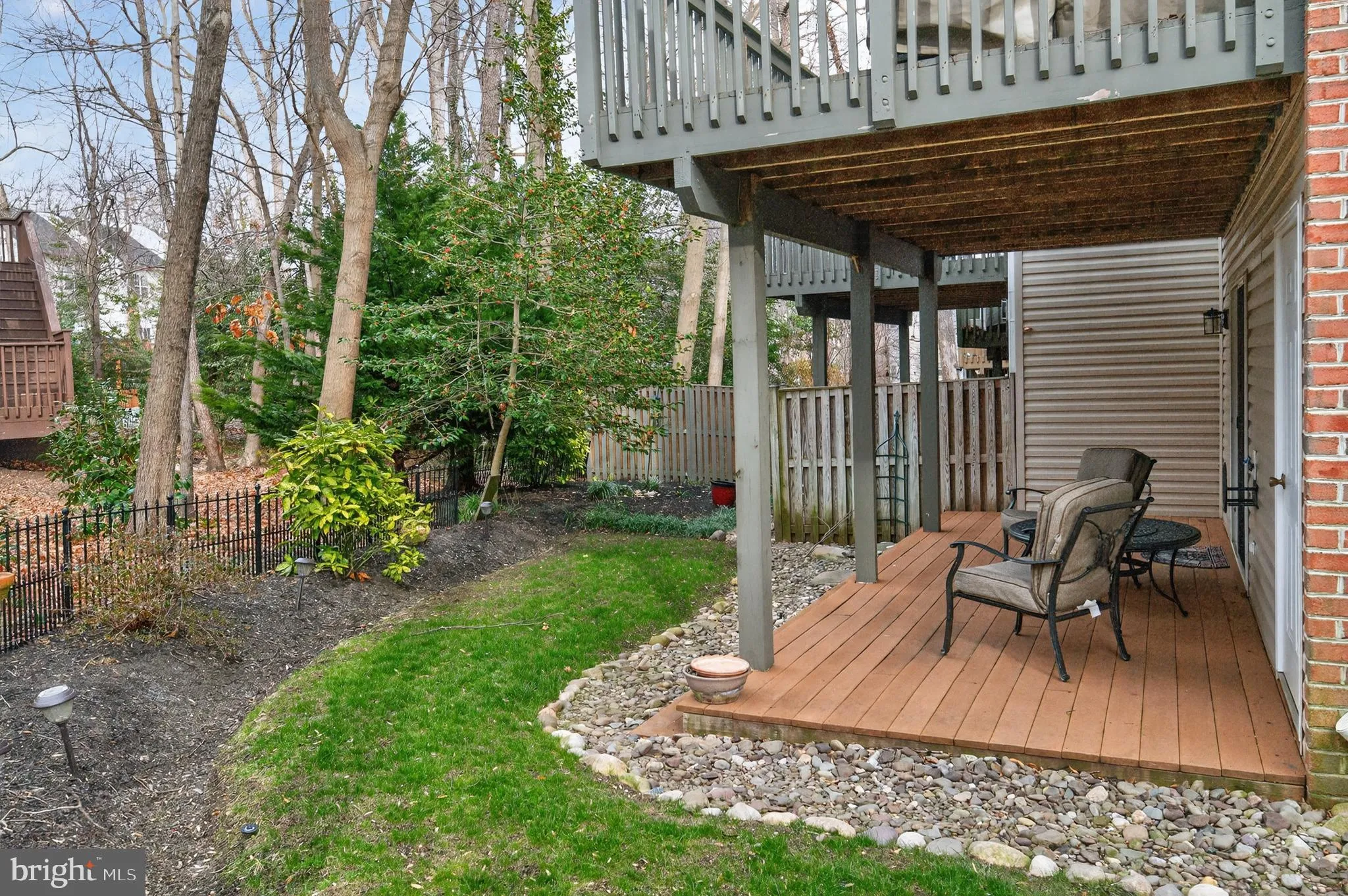 BRICK END-UNIT in sought-after Waters Edge community featuring Boadneck schools and shopping. Maximum natural light provided by bump-out bay, palladium and side windows . Two-story entry, 9-ft ceilings plus cathedral and vaulted ceilings and skylight on top floor provide space and open feeling. Entry level features ceramic-tiled foyer, powder room, laundry/storage and cozy family room with gas fireplace and sliding door out to lower deck and back yard. Upstairs is the living room with bay window, dining area, marble two-sided gas fireplace and hardwood floors. The updated kitchen has large island with space for bar stools to sit, gas cooking and adjacent sitting area with built-in storage cabinets. There are sliding doors here out to the large upper deck nestled into the surrounding landscape — a magical space with special lighting. The upper floor features a lovely primary suite with walk-in closet, vaulted ceiling and fan. The primary bath has a whirlpool bath, shower stall, double vanity and skylight. Two additional bedrooms on this level have vaulted ceilings, ceiling fans and ample closet space. There is a full bath on the hallway with ceramic tile tub/shower and floor. Elegant touches throughout include custom shades, plantation shutters, lighting fixtures, built-ins and more. Beautifully cared for and maintained — new gas HVAC (2024), new roof (2022), gas hot water heater (2019), newer appliances and paint/carpet. Waters Edge community offers access to private dock/pier on Little Magothy River, walking trails around community and to Broadneck Trail for biking and a delightful playground with picnic area. So much to enjoy here!