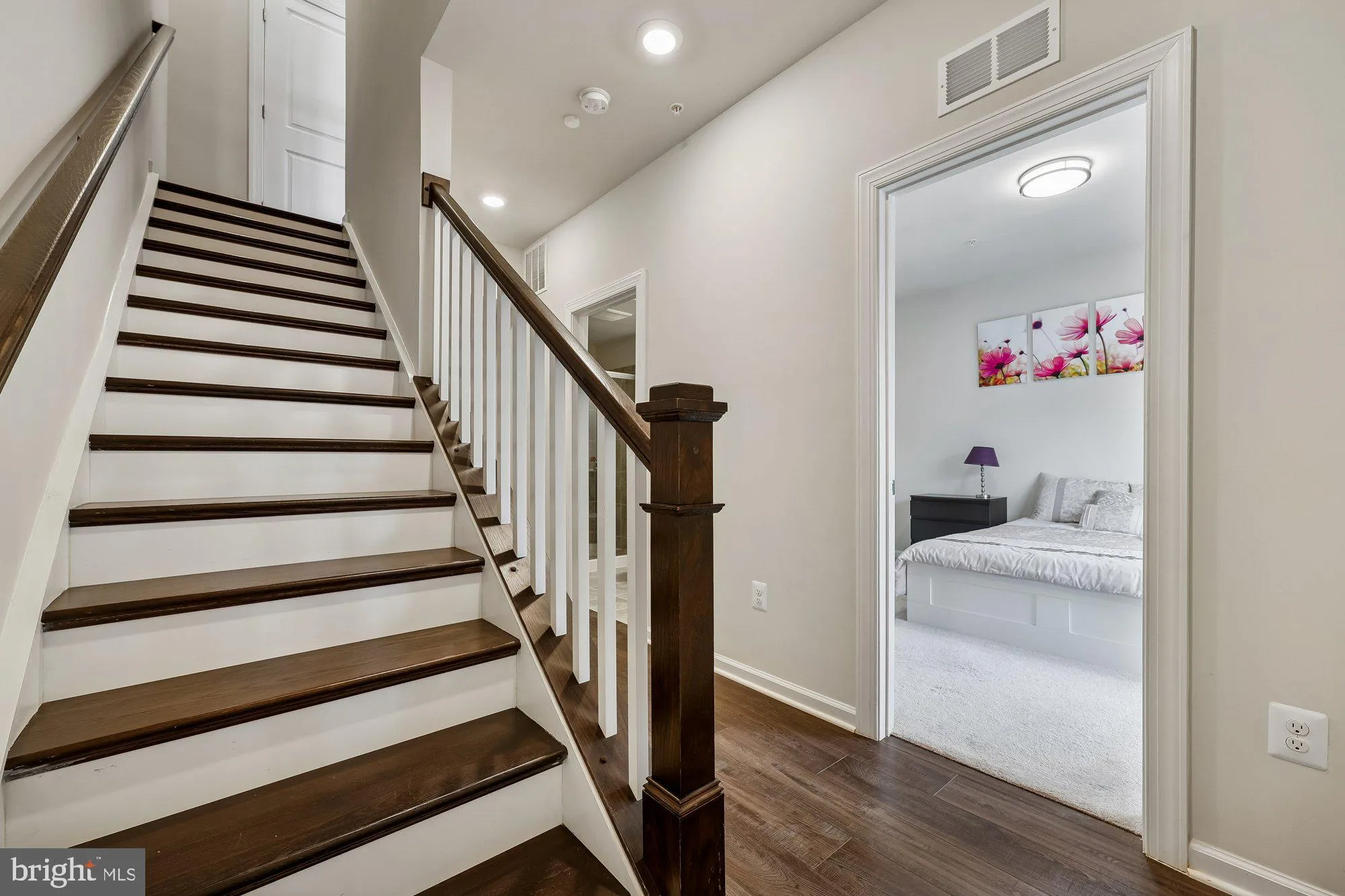 Open-concept living with oversized windows and wood flooring on all levels. Entry-level bedroom and full bath, plus 2-car garage on the main level. Second level has a beautiful, upgraded kitchen that features tall white cabinets, an oversized granite island, stainless steel appliances, and deck access. Two primary suites on the third level, each with private en-suite baths and generous closet space. Fourth-level bonus retreat with half bath and private deck is perfect space for home office, gym or media room. Convenient to shopping, dining, and major highways with Downtown Crown, Lakelands and Kentlands all minutes away.