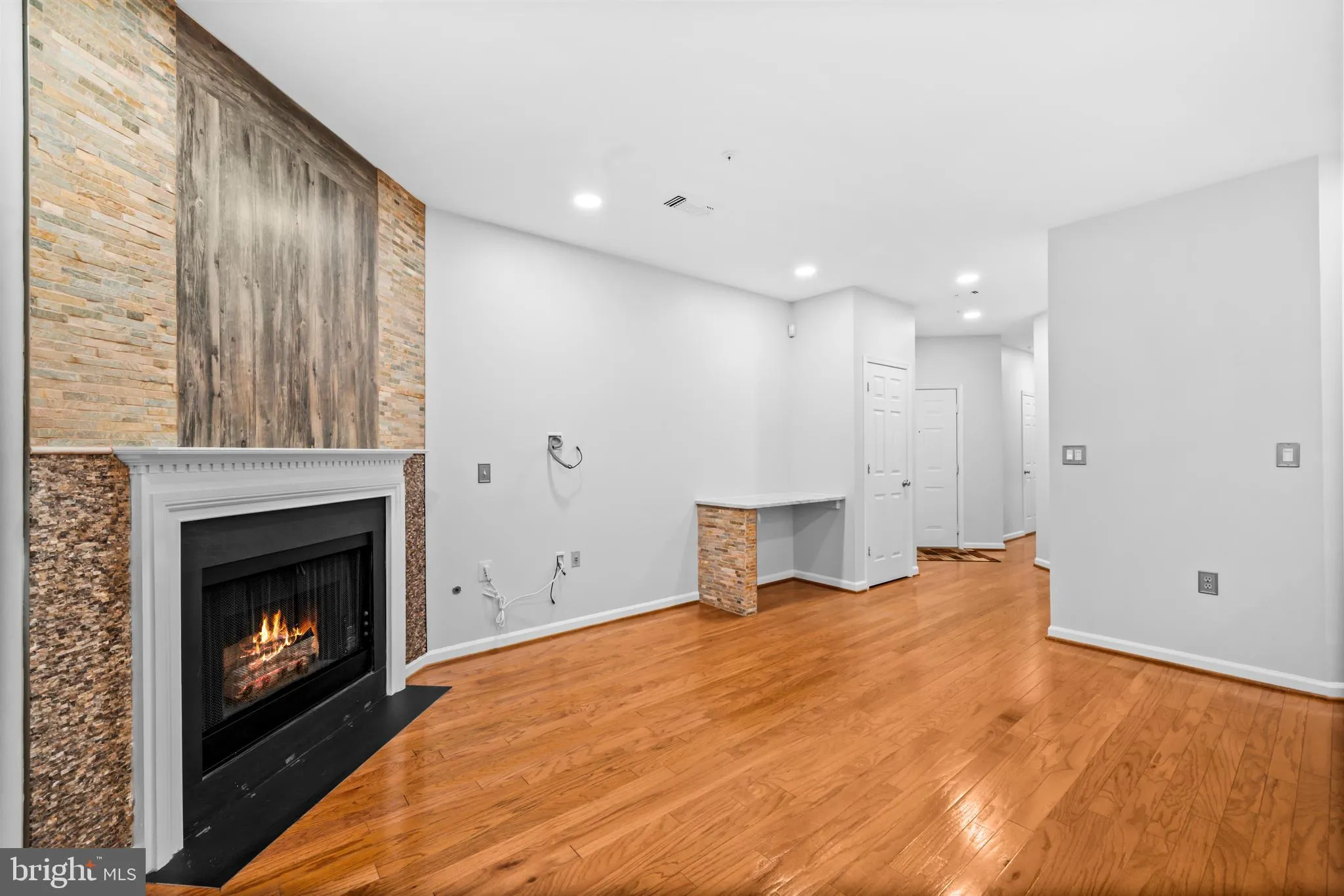 WALKING DISTANCE TO SILVER LINE METRO. Thoughtfully renovated and freshly painted, this light-filled condo blends elevated finishes with exceptional everyday functionality just moments from multiple shopping plazas. Recent upgrades include hardwood flooring in both bedrooms, recessed lighting, custom closet systems, and updated baths (all 2022). The main living space is both refined and versatile, anchored by a marble-clad gas fireplace and complemented by a custom marble built-in workstation—ideal for seamless work-from-home living. The kitchen offers granite countertops, stainless steel appliances, and generous cabinetry. Additional conveniences include an in-unit washer and dryer and a private balcony with durable Trex decking. Major systems—HVAC and hot water heater—were replaced in 2022, offering long-term peace of mind. Complete with new blinds (2026), one assigned parking space, and one permit space, this home delivers a compelling combination of location, quality, and low-maintenance living.