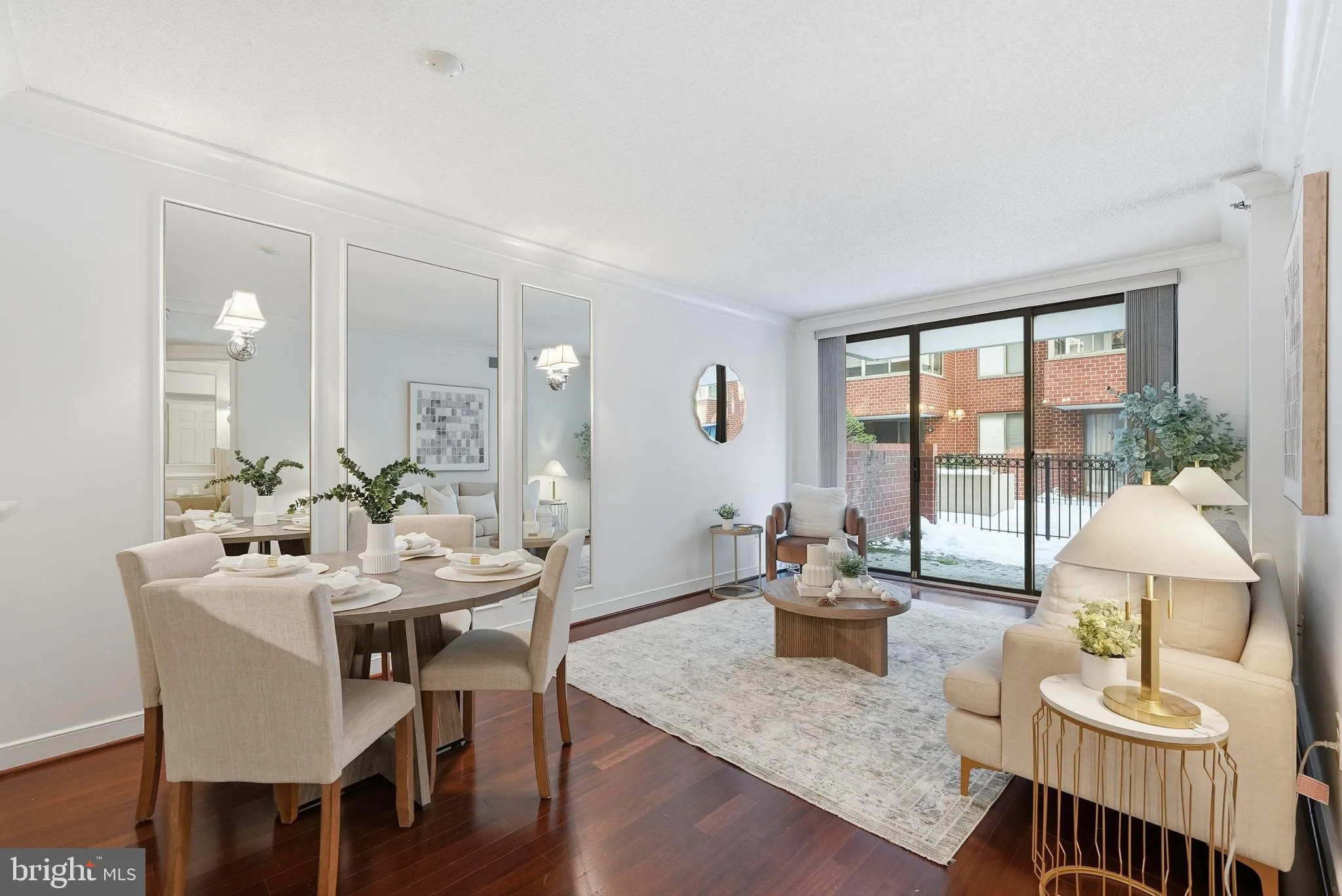 The open-concept layout offers a dedicated dining area that flows into the living room, where sliding glass doors lead to your private patio, an ideal extension of your living space.