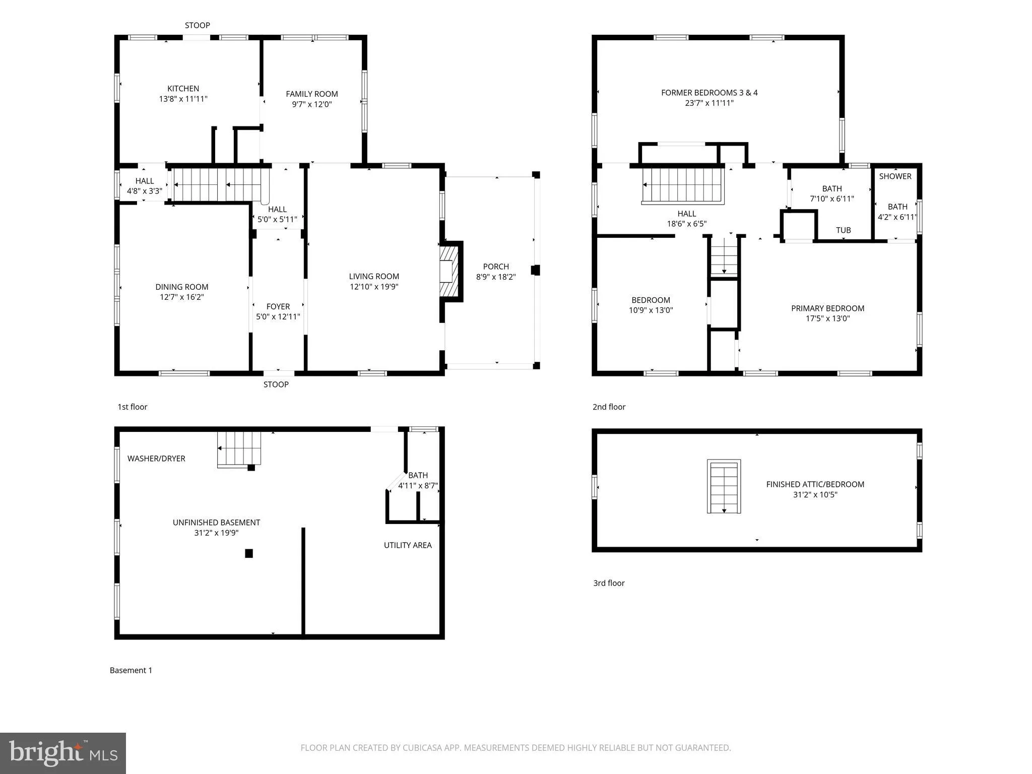 Upstairs, you’ll find three bedrooms and two full baths. The spacious rear third bedroom was originally designed as two separate rooms and could easily be converted back to two bedrooms, offering flexibility for evolving needs. Fixed stairs from the hallway lead to a finished attic level, ideal as a private office, guest suite, or additional bedroom.