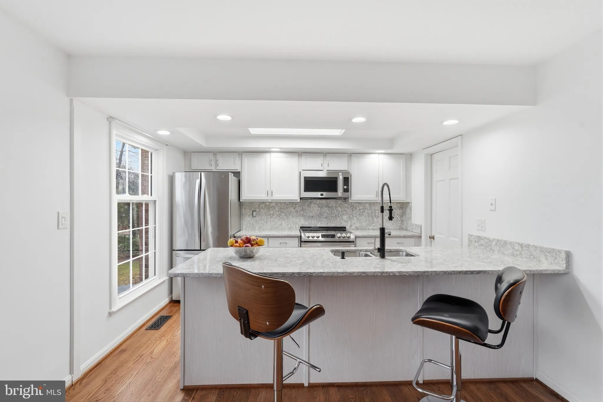 The living and dining areas connect in a way that feels intentional and comfortable, open enough for conversation, yet structured enough to create distinct spaces. It’s balanced, practical, and easy to live in. The recently upgraded kitchen with white cabinetry, stainless steel appliances, and marble-looking granite countertops will steal the show. Or it might be the large center island and oversized walk-in pantry?