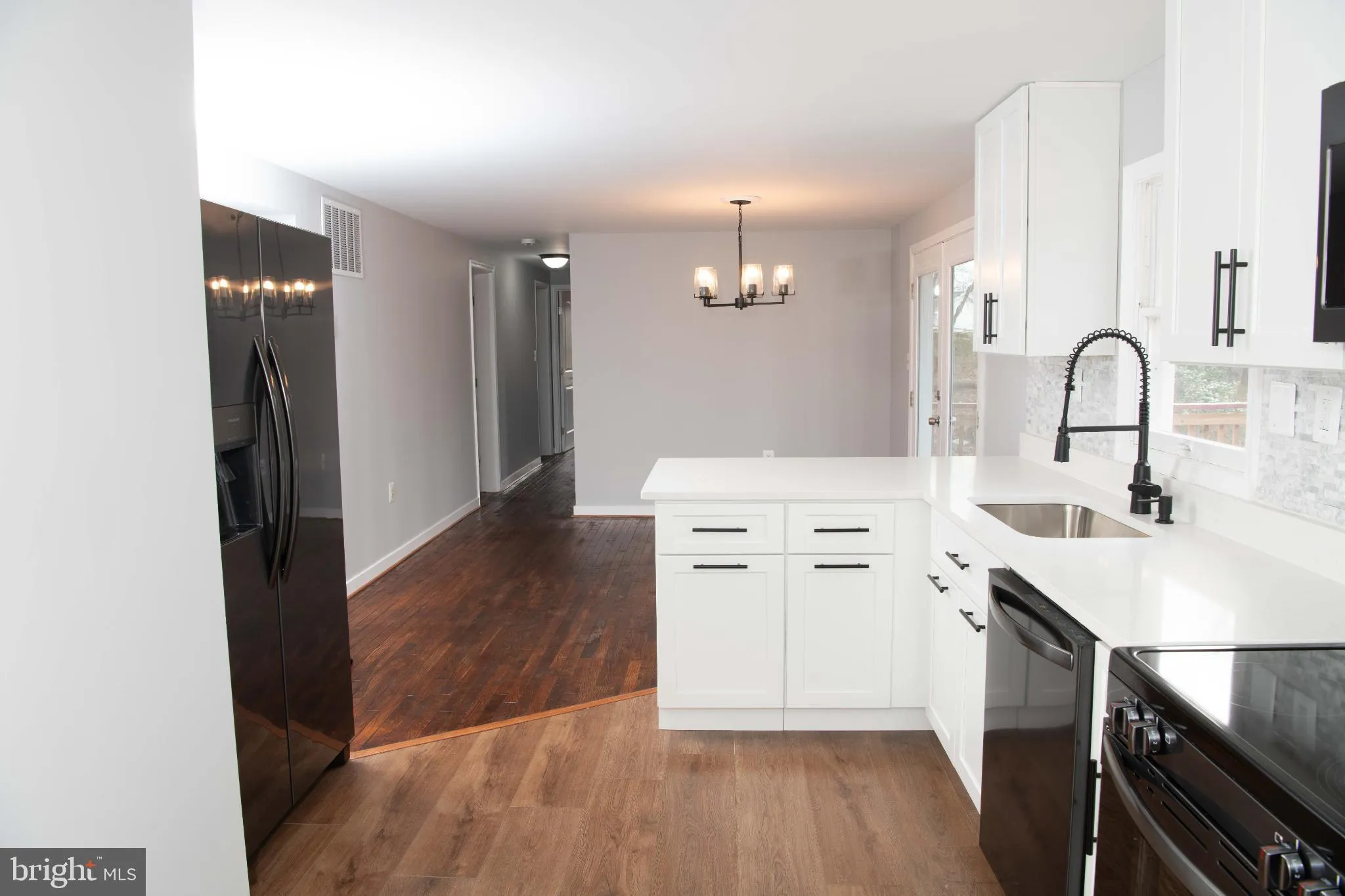 Inside, you’ll find a thoughtfully redesigned interior filled with natural light and finished with a clean, modern aesthetic. The heart of the home features a beautifully updated kitchen with white shaker cabinetry, quartz countertops, designer tile backsplash, and ENERGY STAR black stainless steel appliances. New window screens, updated lighting, and fresh finishes throughout create a true turnkey experience.