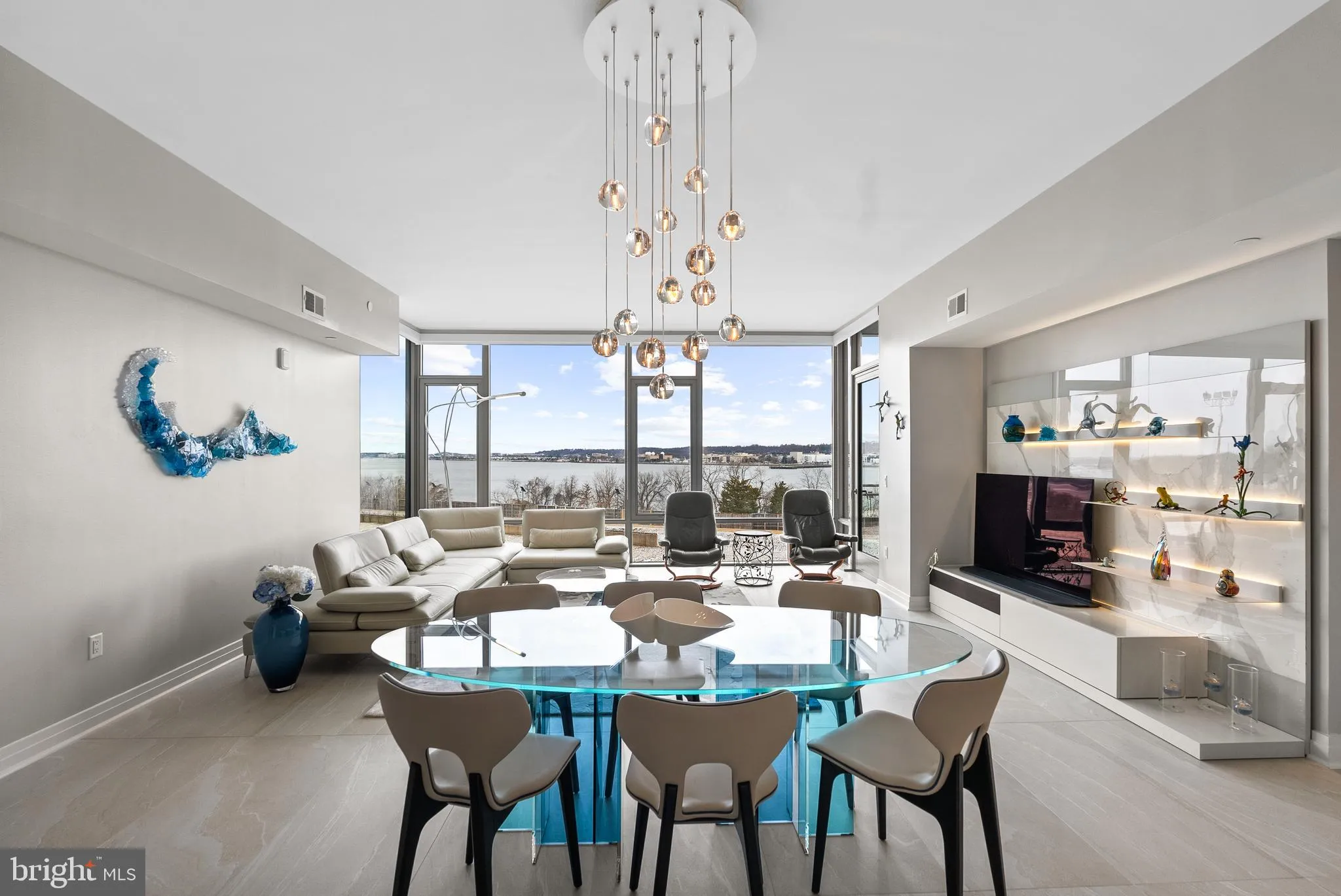 Immerse yourself in upscale comfort at the MUSE, a premier waterfront condominium in Old Town Alexandria’s thriving Arts District. Light-filled and refined, this waterfront two-bedroom, two-bath over 1600 sq. ft. residence is framed by soaring 10+ foot ceilings and dramatic floor-to-ceiling windows in the main living areas and bedrooms, creating an airy, light-infused atmosphere throughout. Porcelain tile floors imported from Italy extend seamlessly throughout the home, offering both modern elegance and exceptional durability. A generous balcony is accessed from the living room, both with river views.