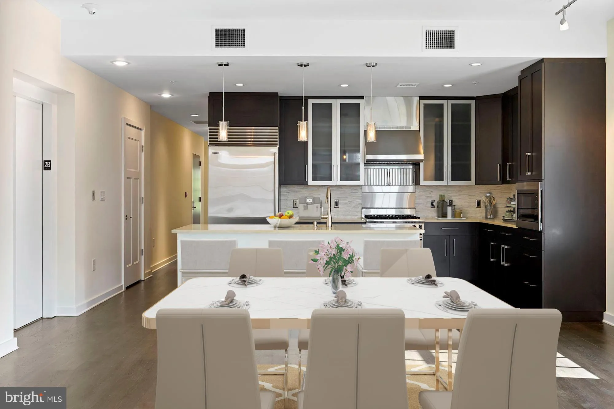 Luxurious corner end-unit residence at Gaslight Square, ideally located in the heart of Arlington. A secure fob-controlled building provides seamless access throughout, while a private elevator opens directly into the unit (2B), offering both convenience and privacy from the garage level.
