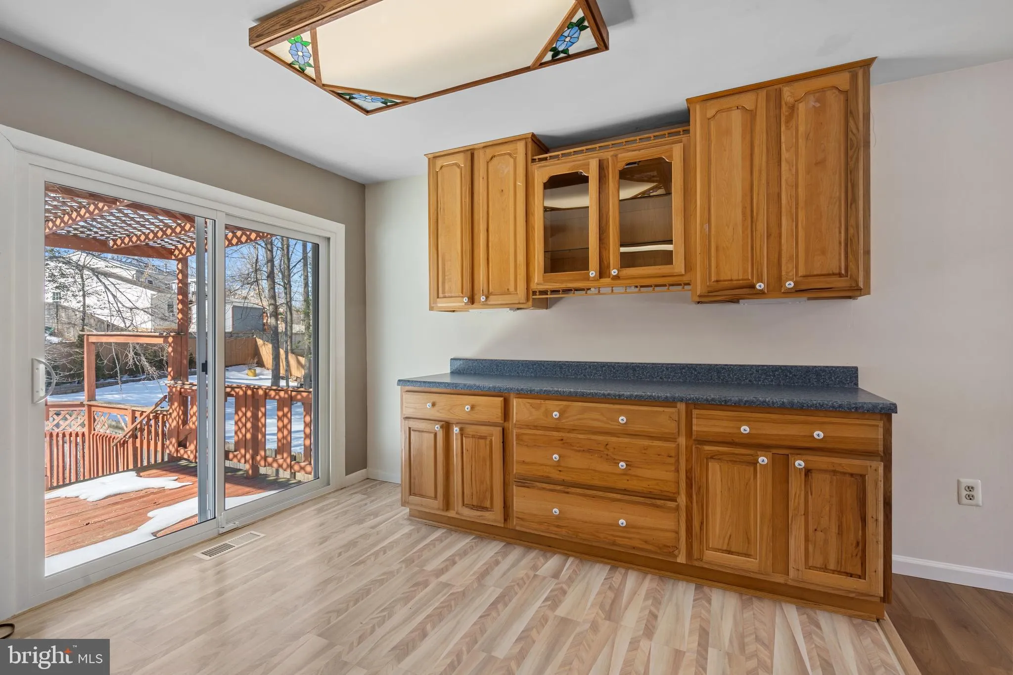 Well-maintained split-foyer home with solid construction and numerous updates throughout. The main level features a bright, inviting living room, highlighted by a charming bay window that fills the room with natural light. The kitchen features 42” wood cabinetry with ample storage. At the same time, the dining area opens to a spacious, three-level deck through a new sliding glass door — perfect for entertaining, grilling, or relaxing outdoors.