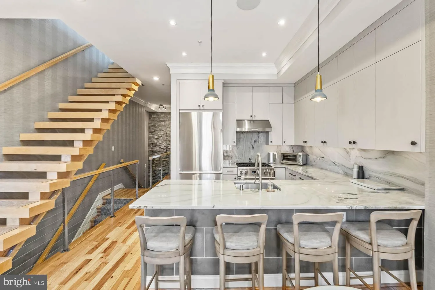 Logan Station Condo | 3 Bed | 3 Bath | 1,600 Sf | Private Rooftop Deck | 1 Reserved Garage Parking Space | Building: Built in 1895, Concierge, Elevator | Apartment: Fully Furnished, Open Living Layout, Large Windows w/ Lots of Natural Light, Large Walk-In Closets w/ Custom Built-In Shelving, Crown Molding & LED Lighting Throughout, Floating Staircase, Hardwood Flooring Throughout, Laundry Room w/ Full Size Washer & Dryer | Kitchen: Peninsula Island w/ Seating for 4, Built-In Cabinetry, Granite Countertops, Stainless Steel Appliances, Large Refrigerator w/ Bottom Freezer, Gas Cooking Range, Full Size Dishwasher | Baths: Frameless Glass Enclosed Showers, Shower/Tub Combo in 1st Floor Bathroom, Large Dual Vanity & Water Closet in Primary Bath, Vanities w/ Storage, Large Format Tile Flooring | Transportation: 0.4 miles to Shaw Howard University Metro (Green, Yellow), 0.6 miles to U Street/African-American Civil War, Memorial/Cardozo Metro (Green), 0.9 miles to Dupont Circle Metro (Red) | Day-to-Day: Whole Foods Market, Trader Joe’s, Streets Market, Giant Food, CVS, Walgreens, Wawa, FedEx, UPS, Bank of America, Capital One, PNC Bank, Chase Bank, Solidcore, Barry’s, Orangetheory Fitness, CorePower Yoga, VIDA Fitness, Washington Sports Club, New York Sports Club, Le Pain Quotidien, Tatte Bakery & Cafe, Compass Coffee, Blue Bottle Coffee, Starbucks, Dryy Drop Cleaners, City Cleaners, Logan 14 Aveda Salon & Spa, Vida Spa, Shaw Dog Park, Stead Park Recreation Center, Atlantic Plumbing Cinema, 9:30 Club, Howard Theatre