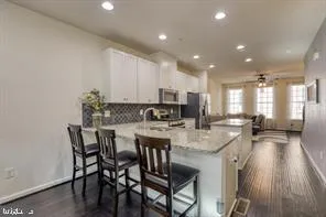 Gorgeous home located in new, hot, downtown Leesburg community. Four level, three bed, three and half bath two car garage town-home. Located right next to the W, O & D trail, five minute walk to restaurants, shops, and parks. Loaded with upgrades including stainless steel appliances.