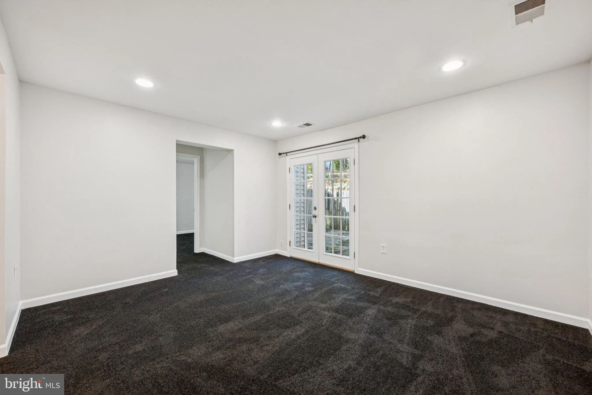 Welcome to this spacious and newly refreshed 2-bedroom plus den, 2-bath terrace-level home offering comfort, style, and convenience. Step inside to brand-new black carpeting paired with sleek grey luxury vinyl plank flooring in the dining area. Freshly painted throughout with all new modern light fixtures, this home is bright and inviting with an abundance of natural light. The modern kitchen features granite countertops, ample cabinet space, and overlooks the open dining area. The primary suite includes a generous walk-in closet and a private ensuite bathroom. A large second bedroom and a versatile third bedroom/den/home office provide plenty of flexibility for your lifestyle. Enjoy your private rear patio, perfect for relaxing or entertaining, plus two assigned parking spaces located directly in front of the home. Additional highlights include in-unit laundry, central heating and cooling, and ample storage throughout. Conveniently located near shopping, dining, parks, and major commuter routes—this home has it all!