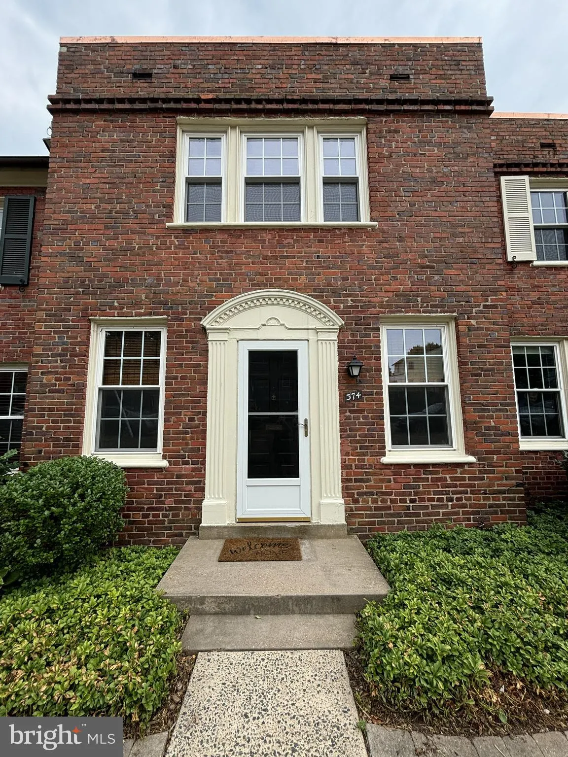 One of the larger 2-bedroom models in Arlington Village, offering 1,086 square feet across two levels. Classic all-brick exterior in a charming courtyard setting with mature landscaping.