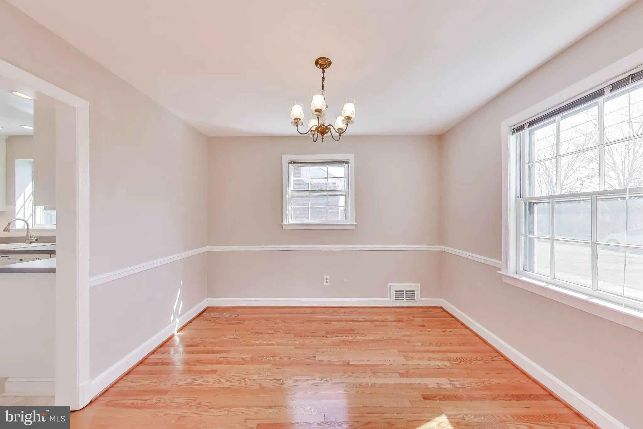 The main level features a sun-filled living room with a charming brick fireplace, creating a warm focal point for gatherings and everyday living. Adjacent spaces flow effortlessly into the formal dining room, ideal for hosting dinners and celebrations. The bright kitchen offers ample cabinetry, modern lighting, and a functional layout that connects seamlessly to the living spaces. A spacious family room, part of a thoughtfully designed three-level extension, adds valuable additional living space on the main level, perfect for relaxing, entertaining, or everyday family life.