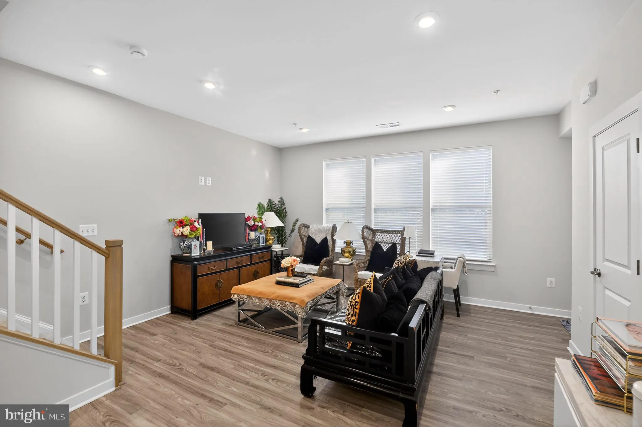 Immaculate and better than new, this light-filled, 3 Bedroom, 2.5 Bath, 2 Level condo offers a stylish open floor plan with modern finishes throughout. The main level features 9-foot ceilings, wide plank flooring, and a spacious living room with recessed lighting that flows seamlessly into the gourmet kitchen. Designed for both everyday living and entertaining, the kitchen boasts quartz countertops, 42-inch cabinetry, stainless steel appliances, refrigerator with ice maker and water dispenser, dishwasher, microwave, breakfast bar, a large walk-in pantry, and additional storage. A convenient powder room with pedestal sink completes the main level.